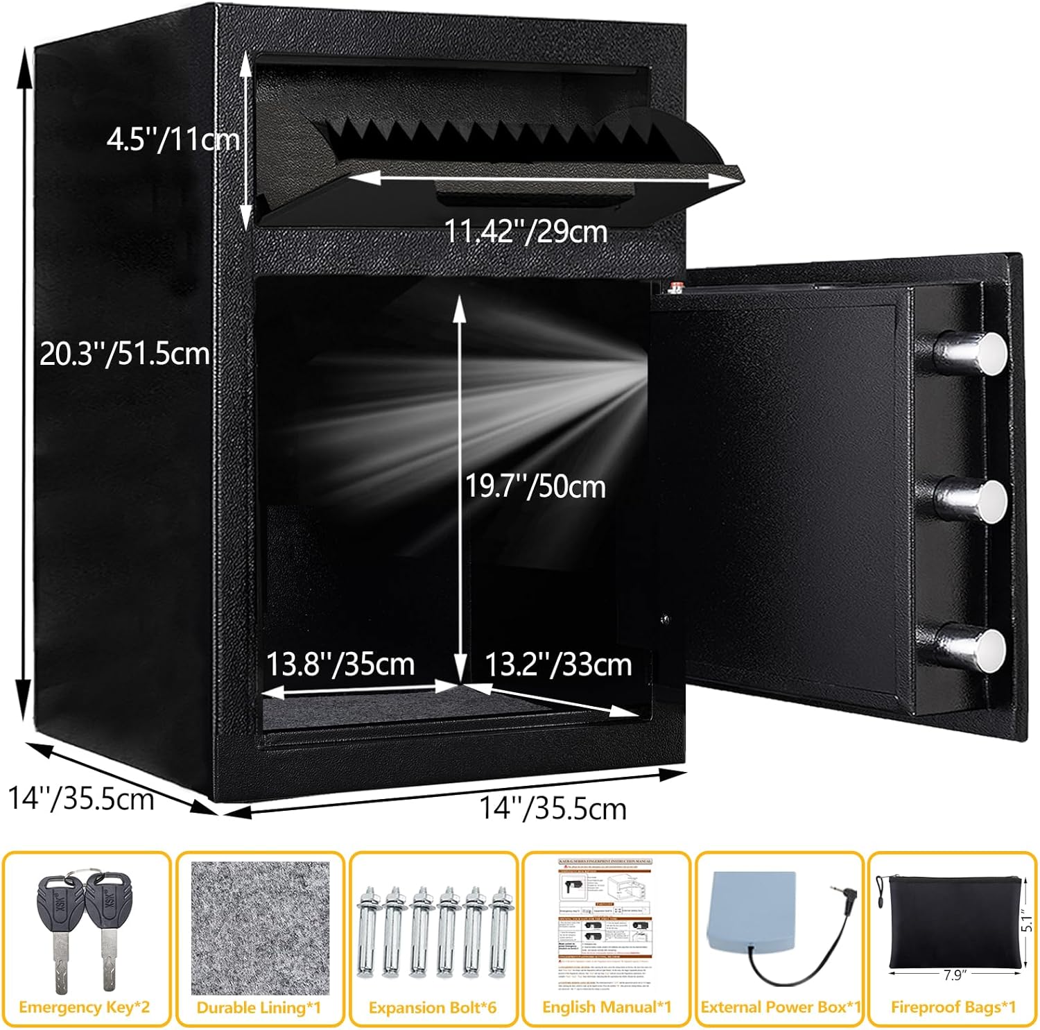 | Included Components | Emergency Keys*2, English Manual*1, Expansion Bolts*6, Safe with Drop Slot*1 |