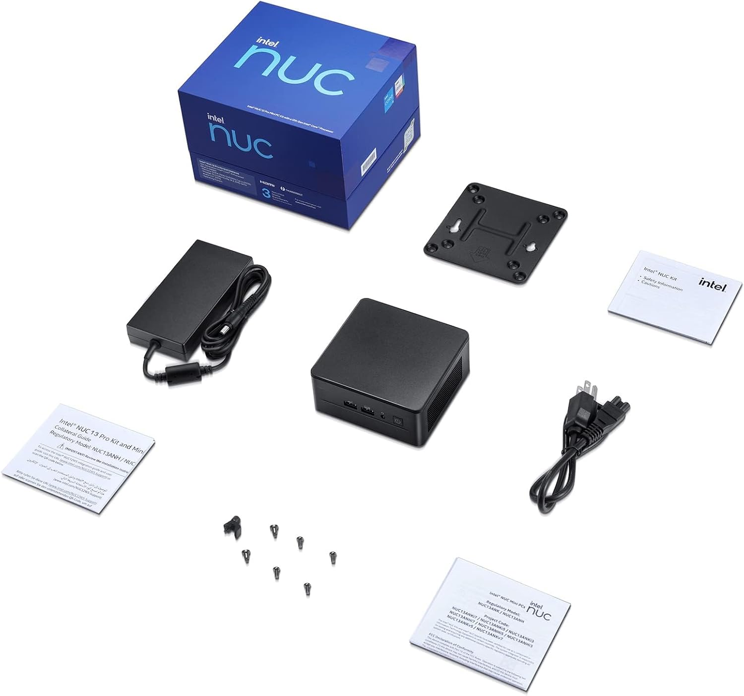 【Storage Expansion Option】Intel NUC 13 i7 desktop Mini PC has built-in 32GB DDR4 RAM, 2TB PCle X4 NVMe SSD (Businesses get the fast memory they need with up to 64GB dual-channel DDR4-3200 SODIMMs. Also support up to 2TB of 2.5-inch PCleX4 Gen4 SSD or SATA SSD, not included) that take storage and performance to the next level. You can use the included Vesa bracket to mount the intel nuc 13 mini pc behind a large screen monitor to save even more space.