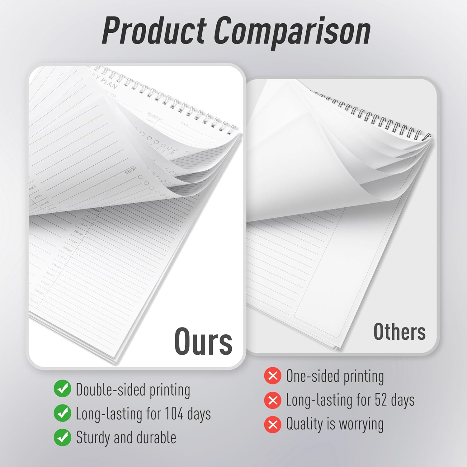✔ USE PREMIUM PAPER : The paper of this Everyday planner is ink-proof and high-quality pages made from acid-free paper with 52 Sheets, resistant from damage by light and air. The back also has a hard board to avoid damage.
