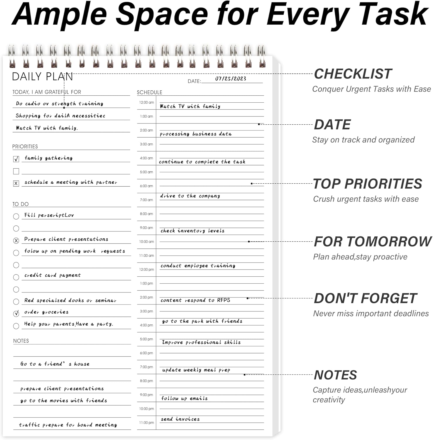 ✔ DAILY FOCUS TO STAY ON TRACK : 24 Hours daily planner staying organized has never been easier - The daily to do notebook features space for today i am great for, priorities, to do, take notes and time schedule.