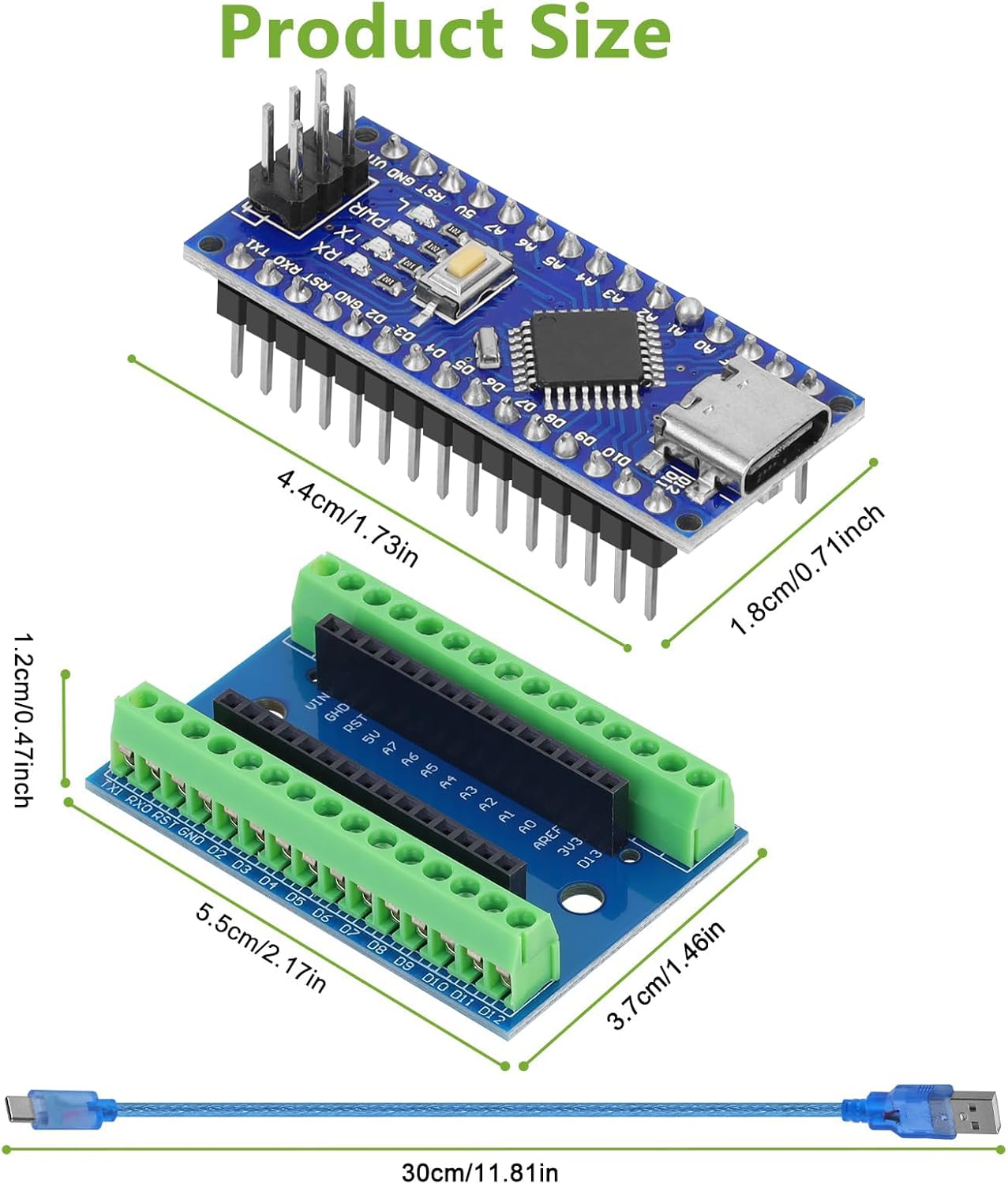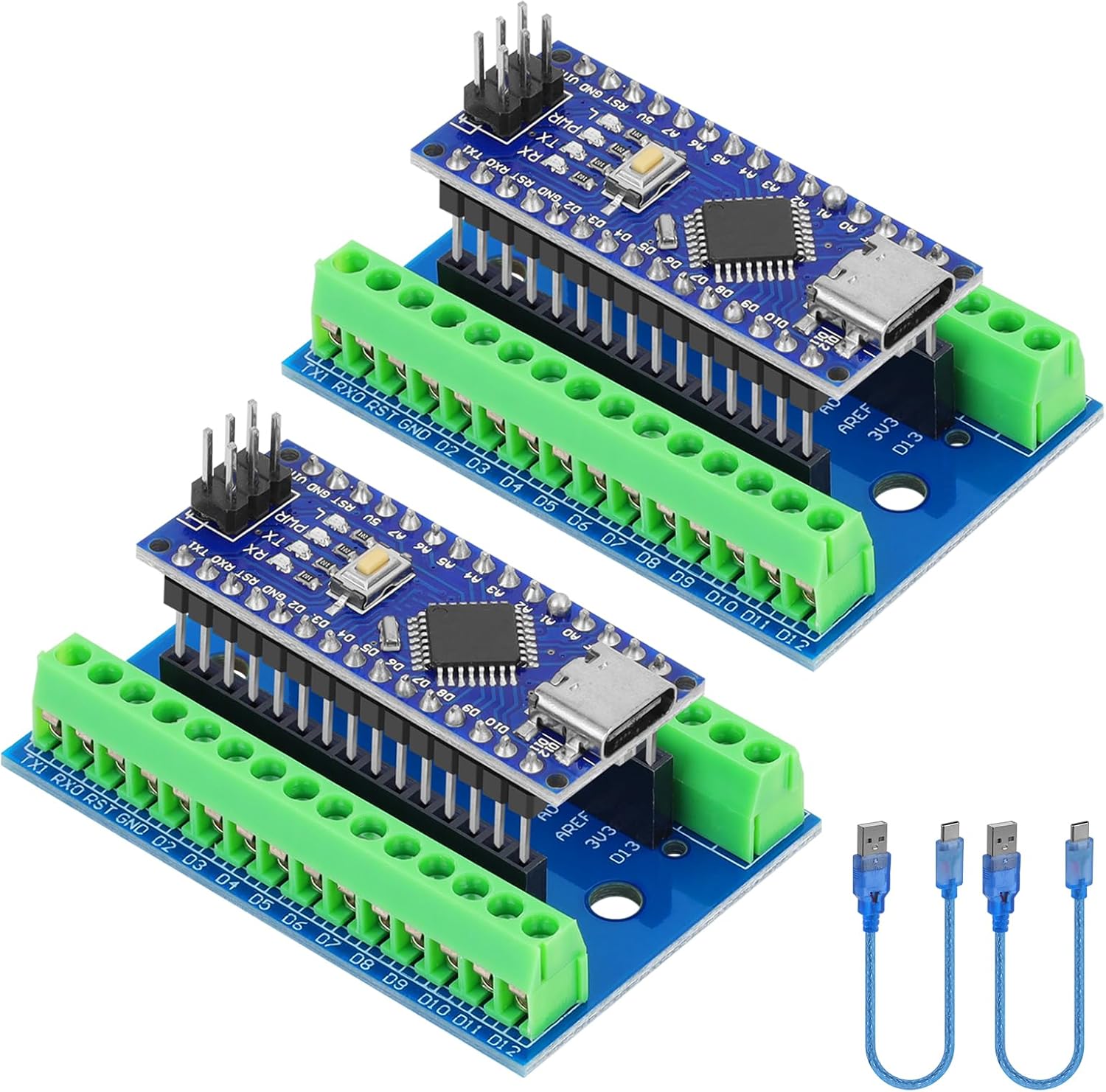 2pcs Nano V3.0 Board ATmega328P MCU CH340G Chip 5V 16M Microcontroller Type-C Port with USB Cable + Nano V3.0 Expansion Board Nano IO Shield V1.O Terminal Adapter Compatible with Arduino IDE