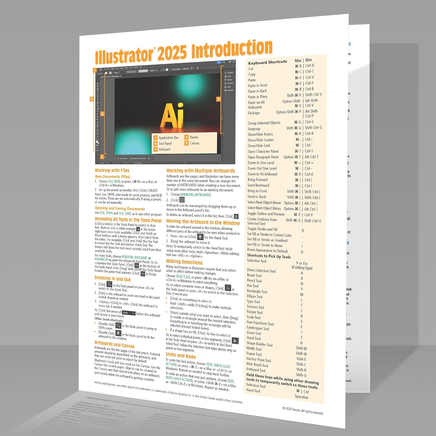 Adobe Illustrator 2025 Introduction Quick Reference Guide (4-page Cheat Sheet of Instructions, Tips & Shortcuts - Laminated Card)