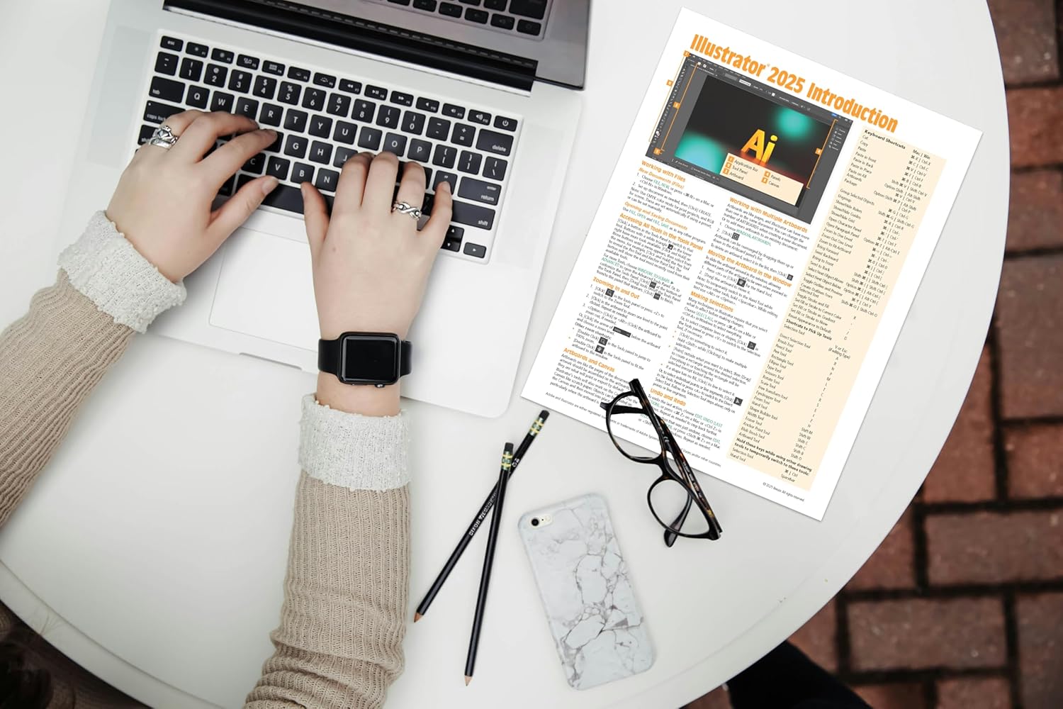 his 4-page laminated guide for Adobe Illustrator 2025 provides step-by-step instructions and shortcuts for drawing tools, powerful text creation, advanced shape manipulation, and so much more. Perfect for both Windows & Mac users! Check out the topics below 👇:
