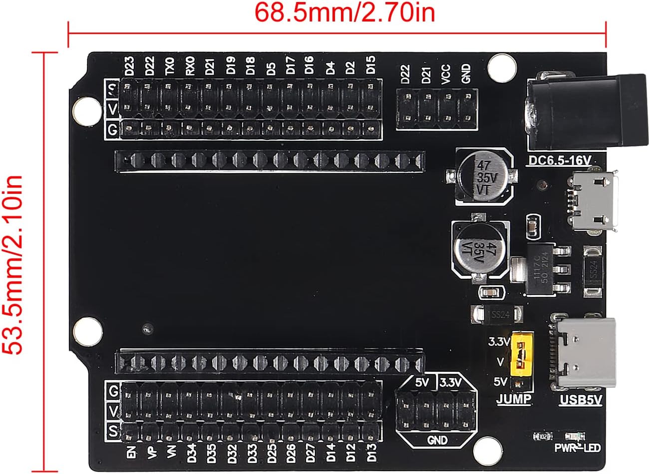AITRIP 2 Sets ESP-WROOM-32 ESP32 ESP-32S Type-C USB Development Board Type-C USB CH340C WiFi+Bluetooth Ultra-Low Power Dual Core ESP32-DevKitC-32 ESP-WROOM-32 Expansion Board for Arduino