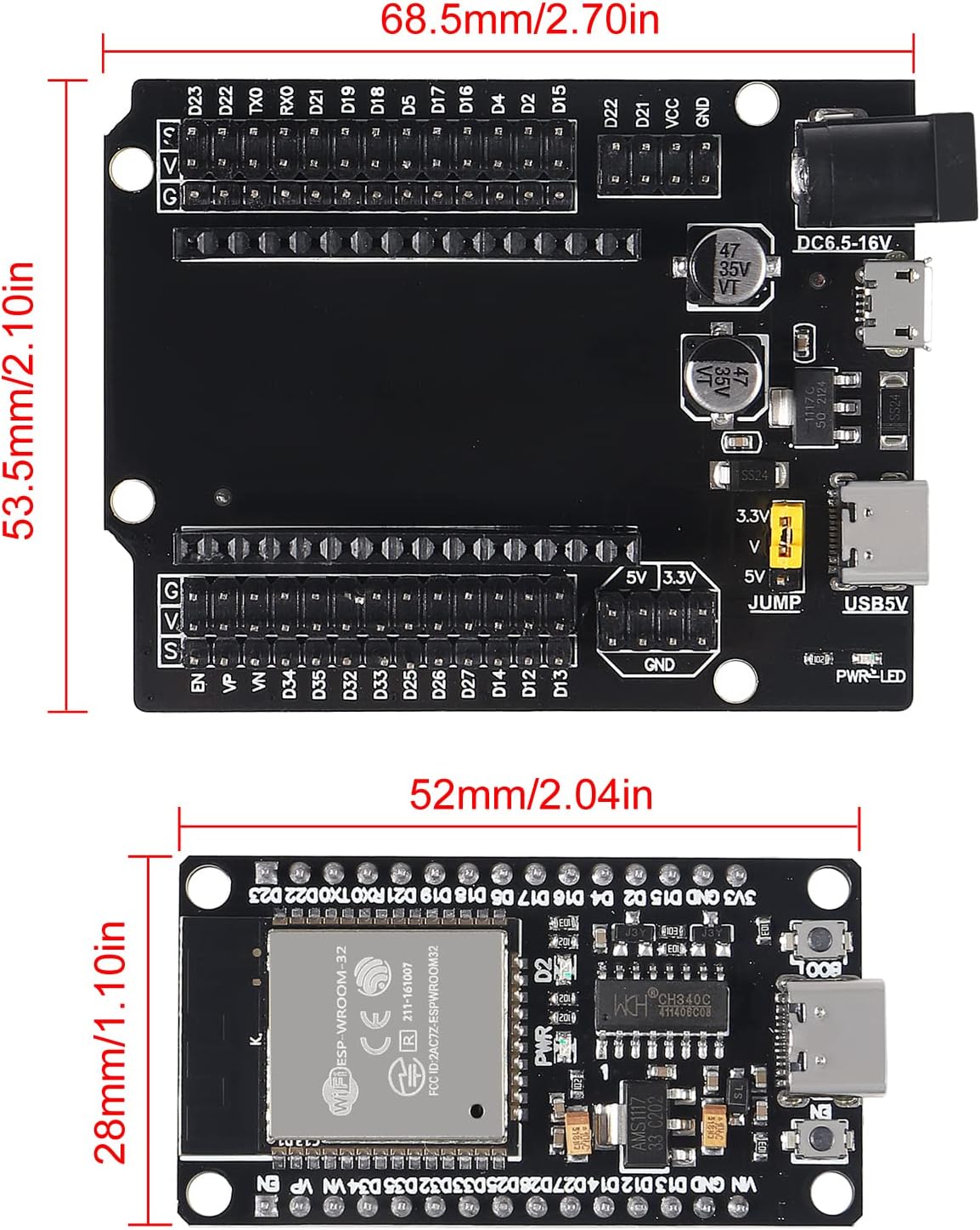 - USB driver chip: CH340C, with good system compatibility, higher download speed, and more stability.