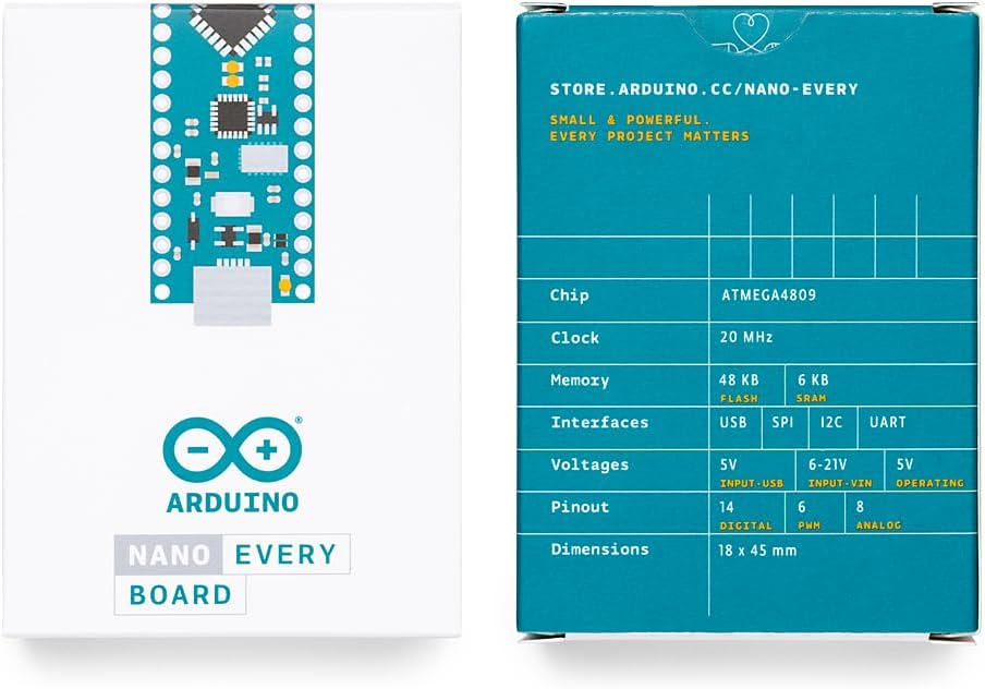 ![Arduino Nano Every [ABX00028] – ATmega4809, 48KB Flash, 6KB SRAM, 20 Digital I/O, 8 Analog Inputs, Micro USB Type-B, Compatible with Arduino IDE for Embedded Projects Arduino Nano Every [ABX00028] – ATmega4809, 48KB Flash, 6KB SRAM, 20 Digital I/O, 8 Analog Inputs, Micro USB Type-B, Compatible with Arduino IDE for Embedded Projects](https://m.media-amazon.com/images/I/615ixkAzhBL._AC_SL1000_.jpg)