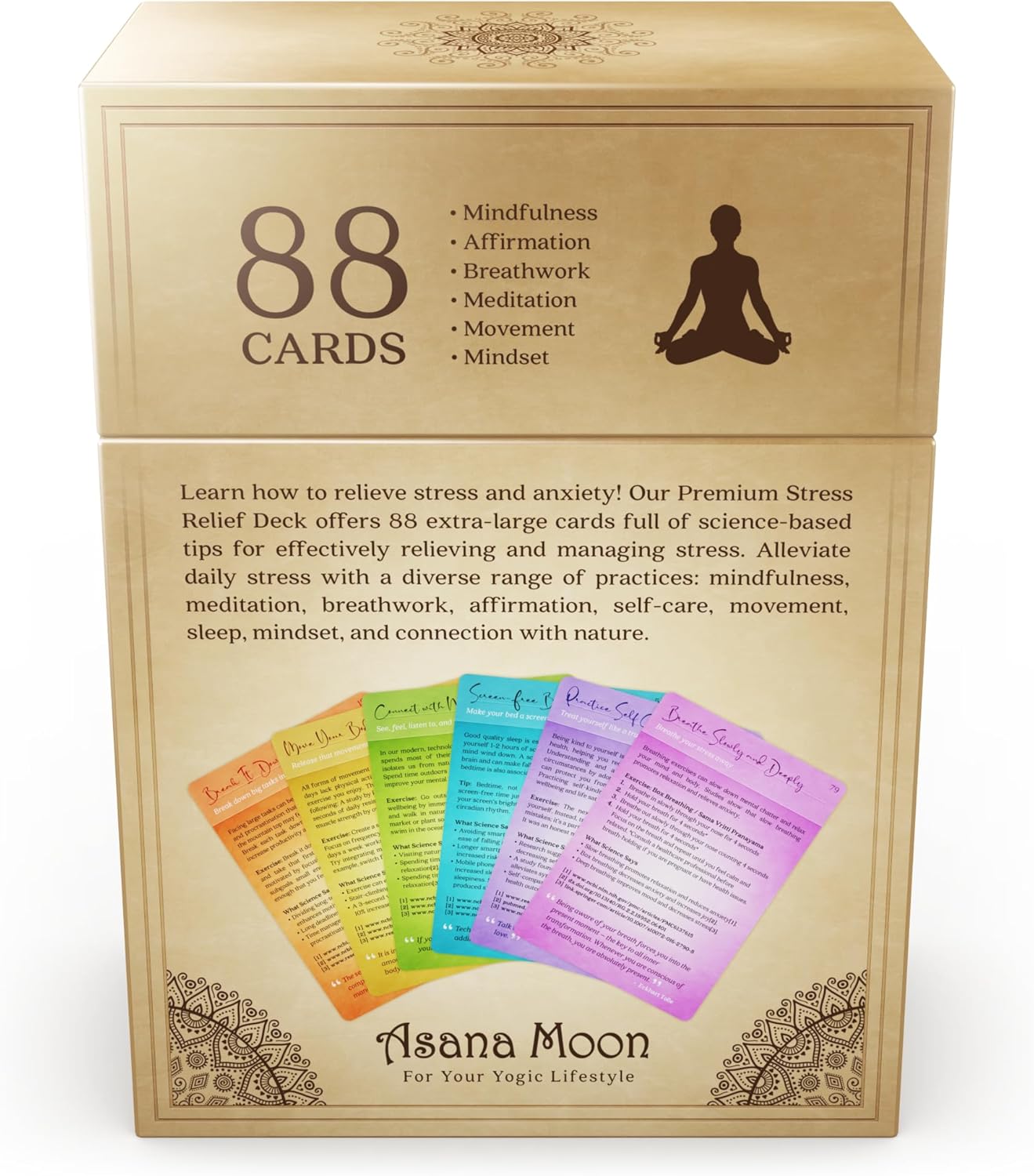 Home Systems & Productivity Asana Moon Stress Relief & Self Care Cards with Positive Affirmations – Calming Anti Anxiety Gift with Meditations