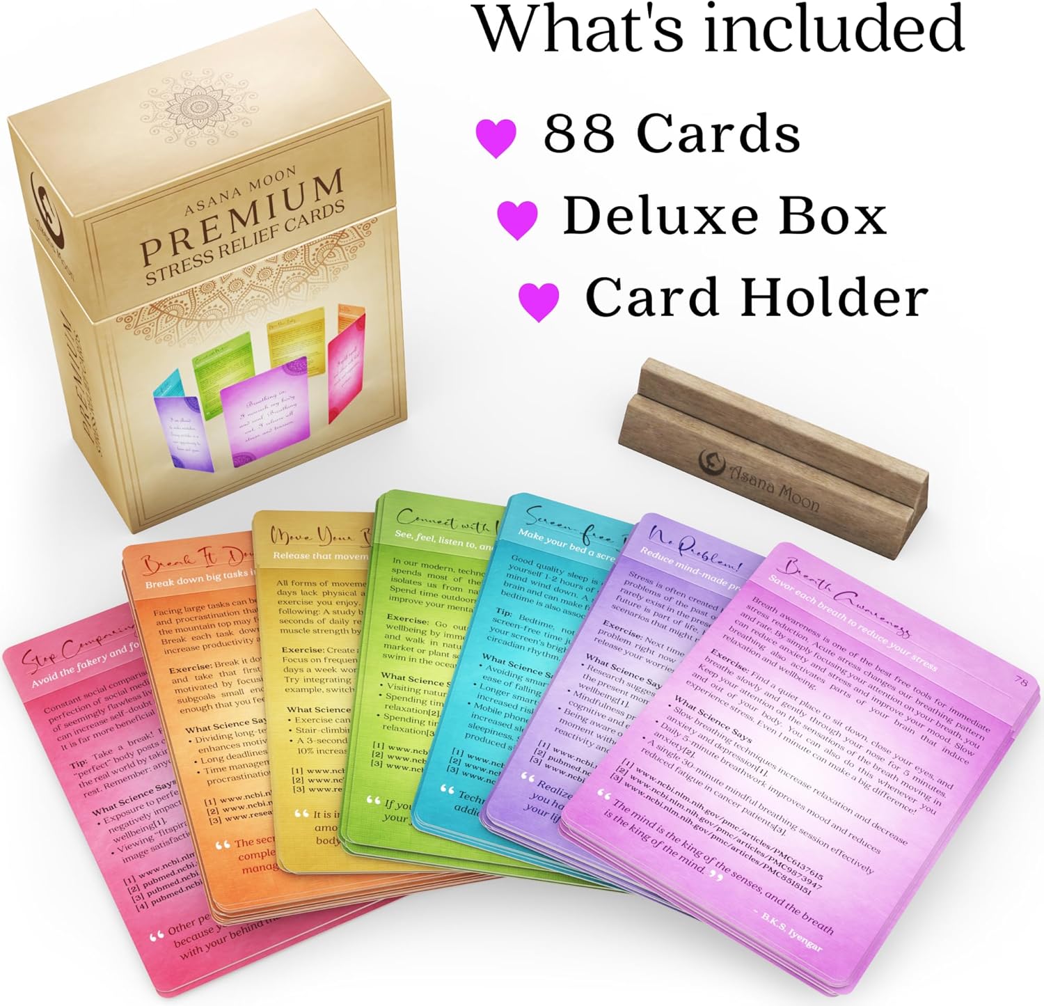 Asana Moon Stress Relief & Self Care Cards with Positive Affirmations - Calming Anti Anxiety Gift with Meditations