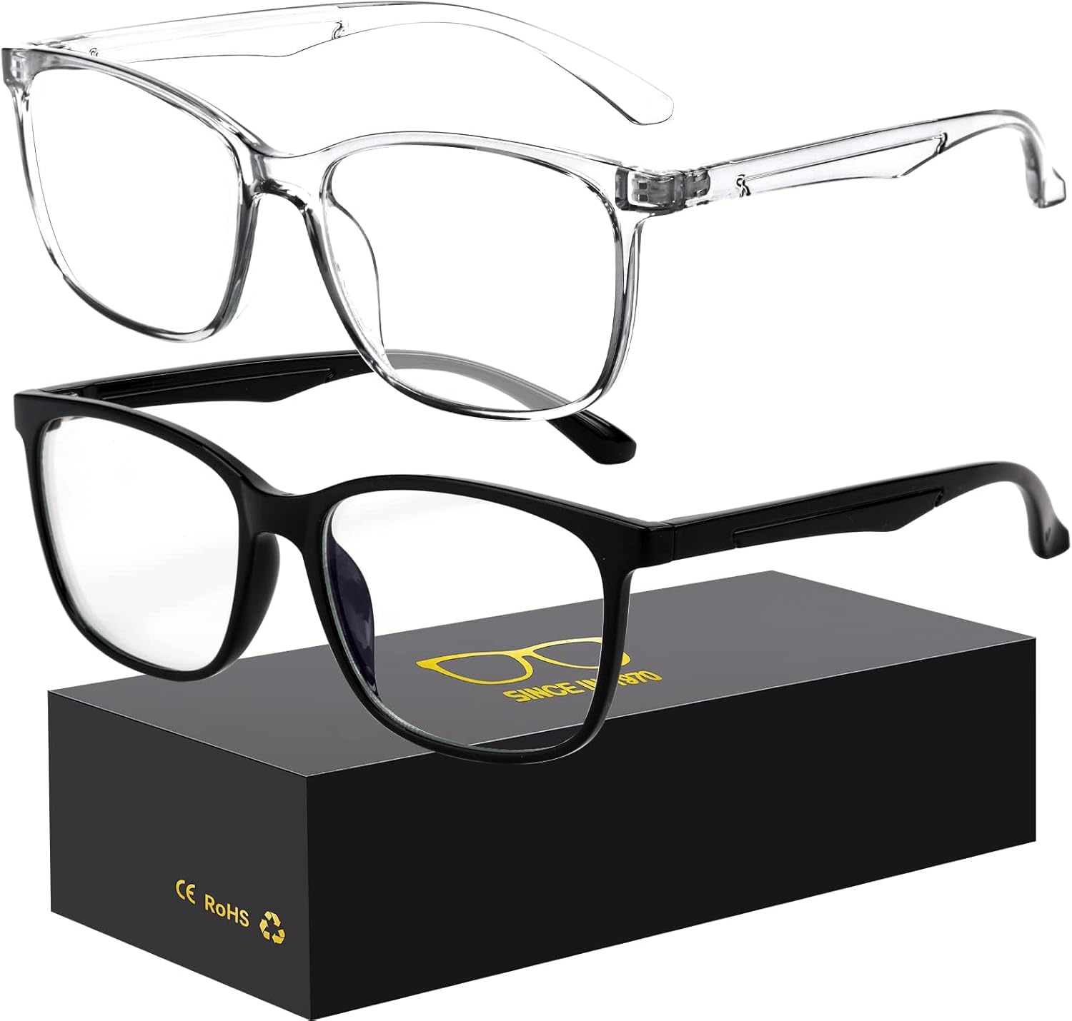 【Excellent Material】- Our blue light blocking glasses are ergonomically designed. They are made of lightweight and impact-resistant PC material to reduce stress on the bridge of the nose and prevent frame breakage and skin scratching, and metal hinges ensure durability. Casual oversized frame design makes you look professional and stylish while working or playing video games.