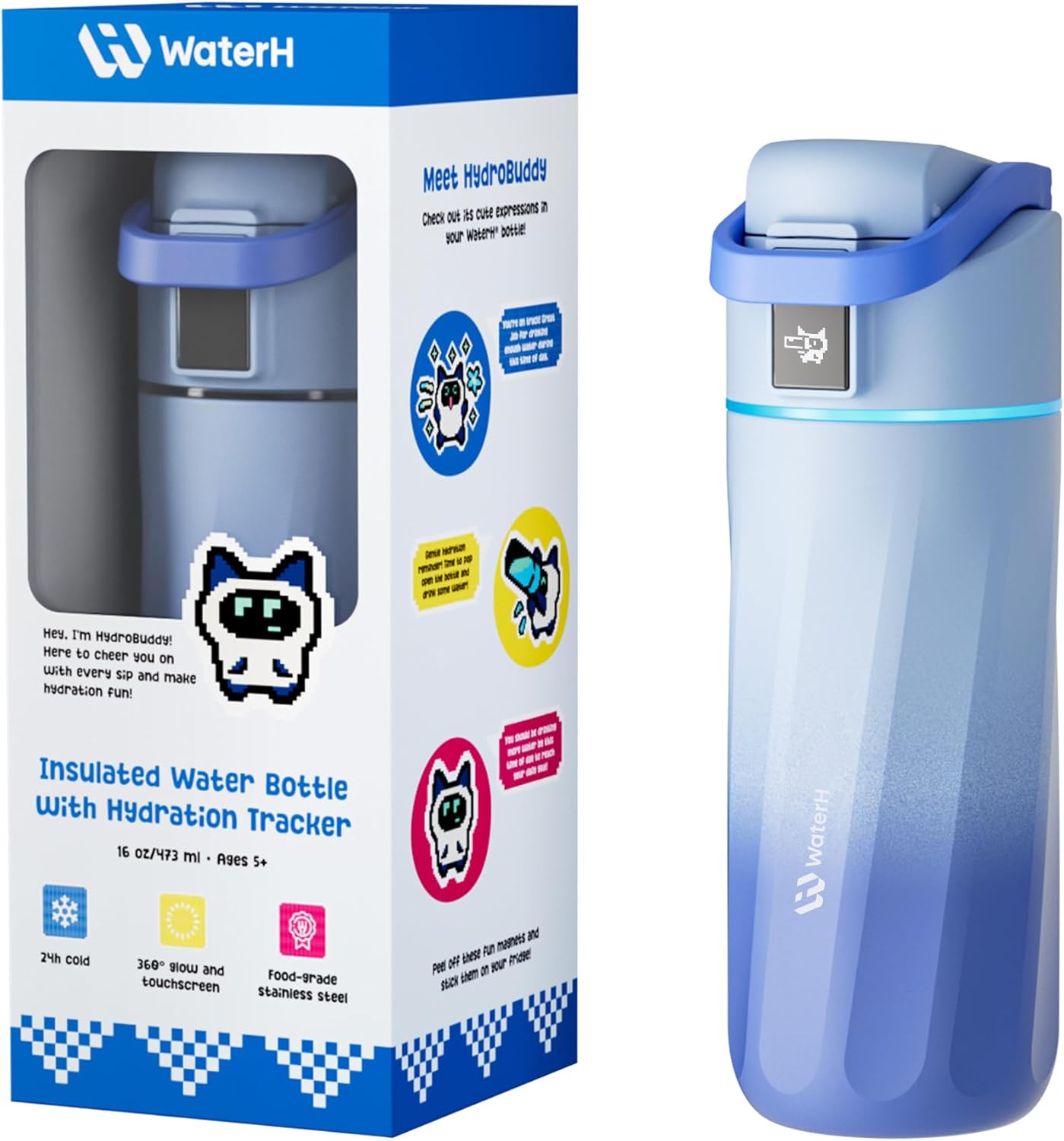 Interactive & Customizable: Each bottle features a customizable digital screen for easy school labeling and tracking. Note: To enable unique name displays for multiple bottles, each requires a separate device and account. Plus, our recyclable packaging transforms into 'Boost Buddy' refrigerator magnets, offering an interactive crafting activity that kids love!