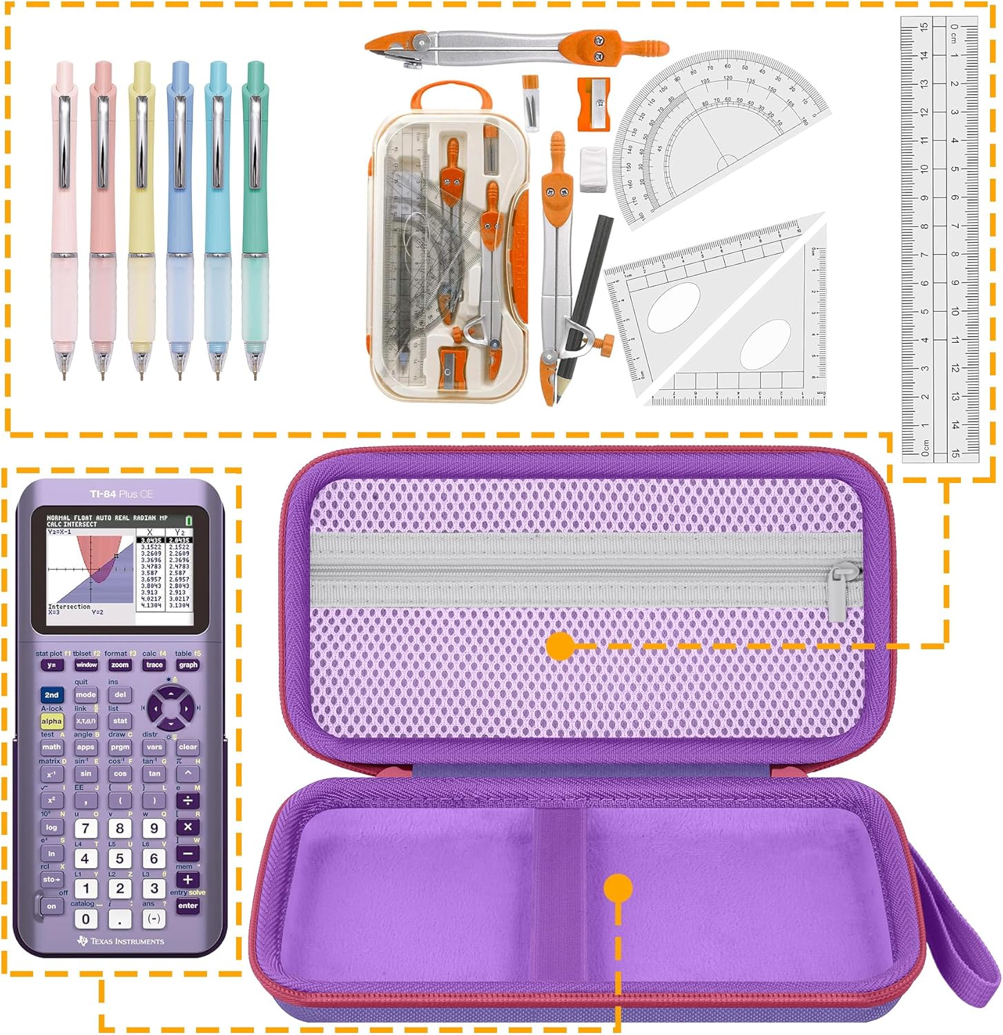 Convenient to carry: The Texas Instruments TI-84 Plus Calculator travel case has a comfortable handle. The sturdy handle and compact size make it very convenient to carry. In addition, the calculator case comes with a mesh bag that can store exam supplies together, and one case can carry all the items needed