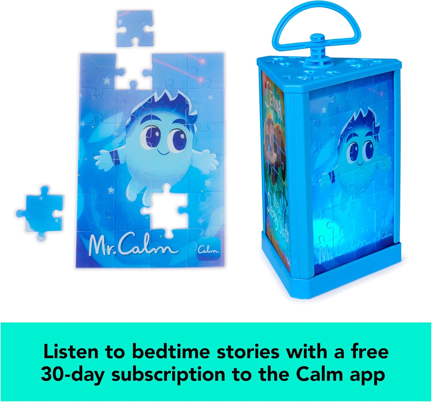 3-IN-1 LANTERN PUZZLES: Piece together 3 nighttime puzzles while listening to sleepy stories on the Calm app. Connect all the puzzles together to assemble a glowing lantern and drift off to dreamland