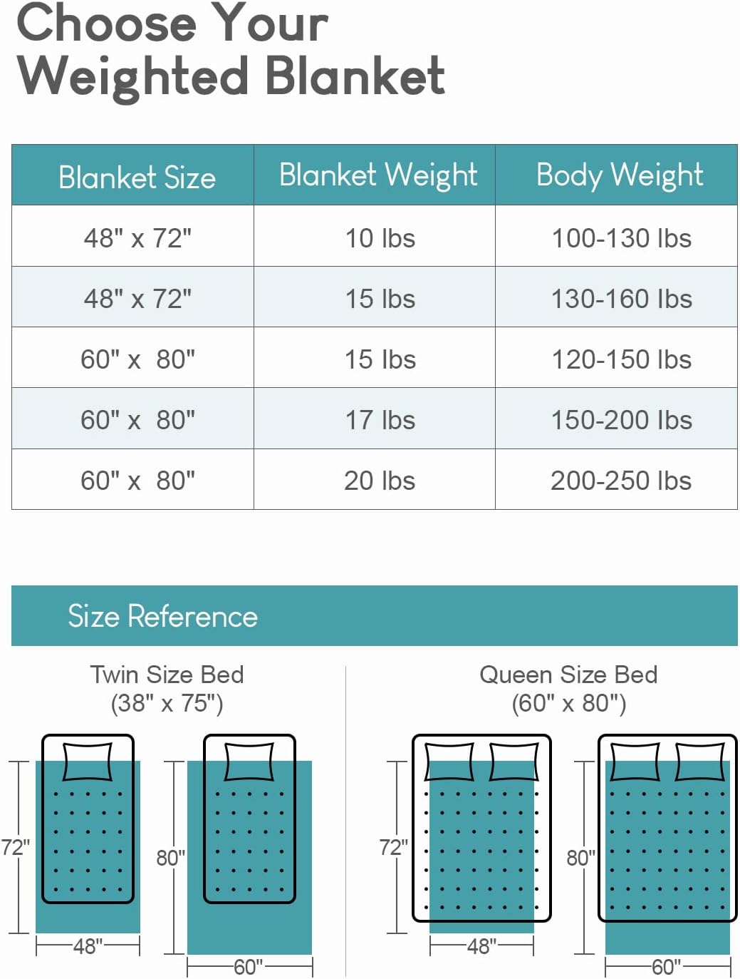 Pro Tips: To ensure safety and comfort, adults weighted blankets are designed smaller than regular throw blankets, but they still fits twin and queen size beds. We recommend choosing a blanket weight that is 8%-12% of your body weight. It is commercial machine washable in cold water, can be tumble dried on low, or spot cleaned