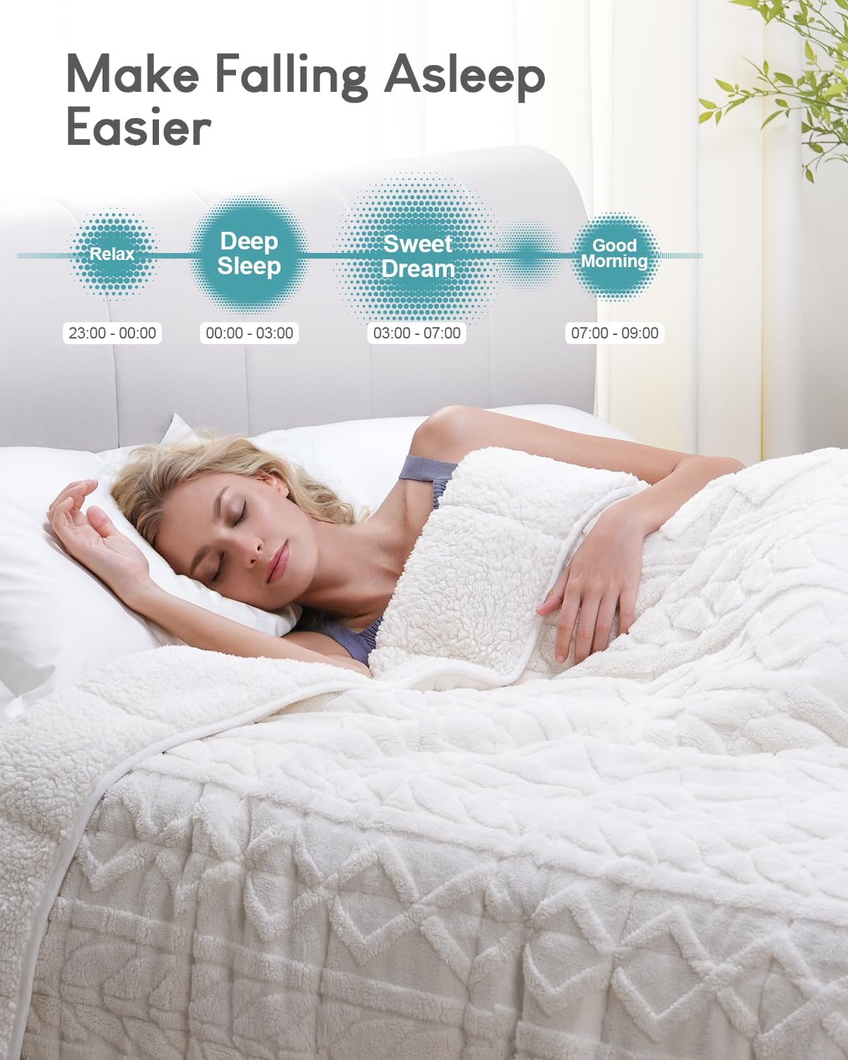 Comfortable and Beautiful: Our weighted blanket for adults features a top layer of 260 GSM raised, cable-knit-like fleece, adding a touch of elegance to any room. The bottom layer is made of 220 GSM fluffy, warm Sherpa, incredibly soft and cozy, making you feel like you're sleeping in a cloud