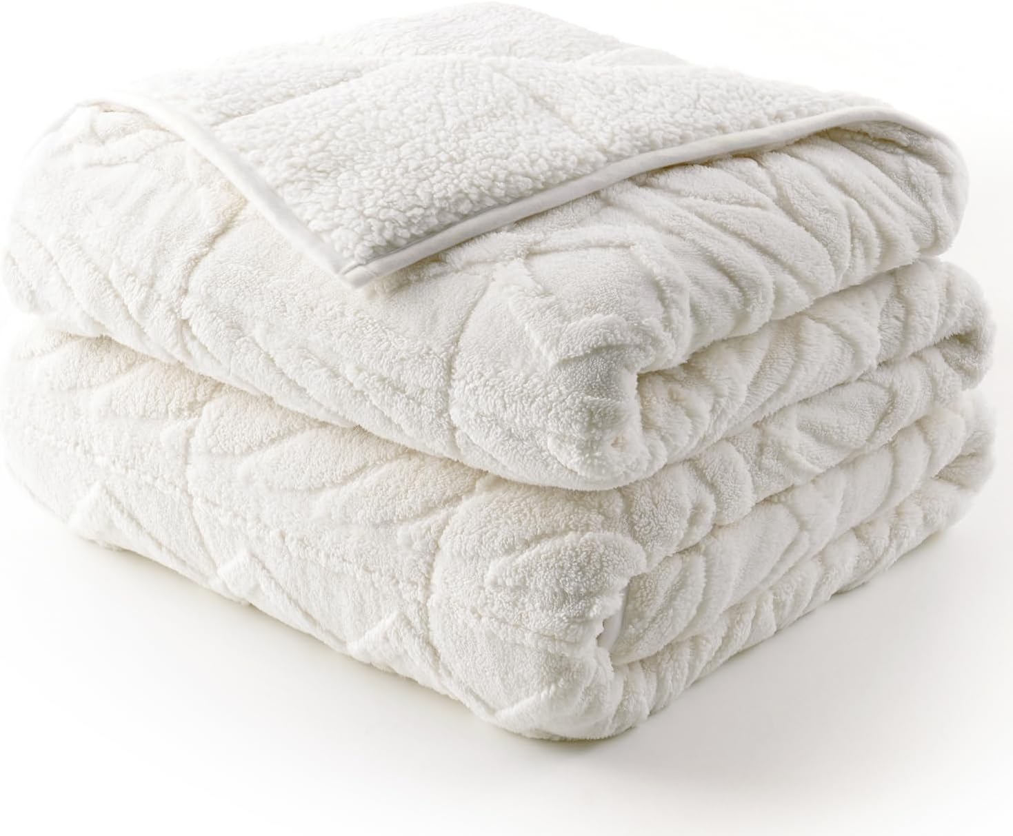 Cottonblue Jacquard Weighted Blanket 15lbs for Adults Queen Size, Ultra Soft Cozy Comfort Sherpa Blanket for Relax and Sleep, Heavy Bed Blankets with Glass Beads, 60x80 Inches, Cream White
