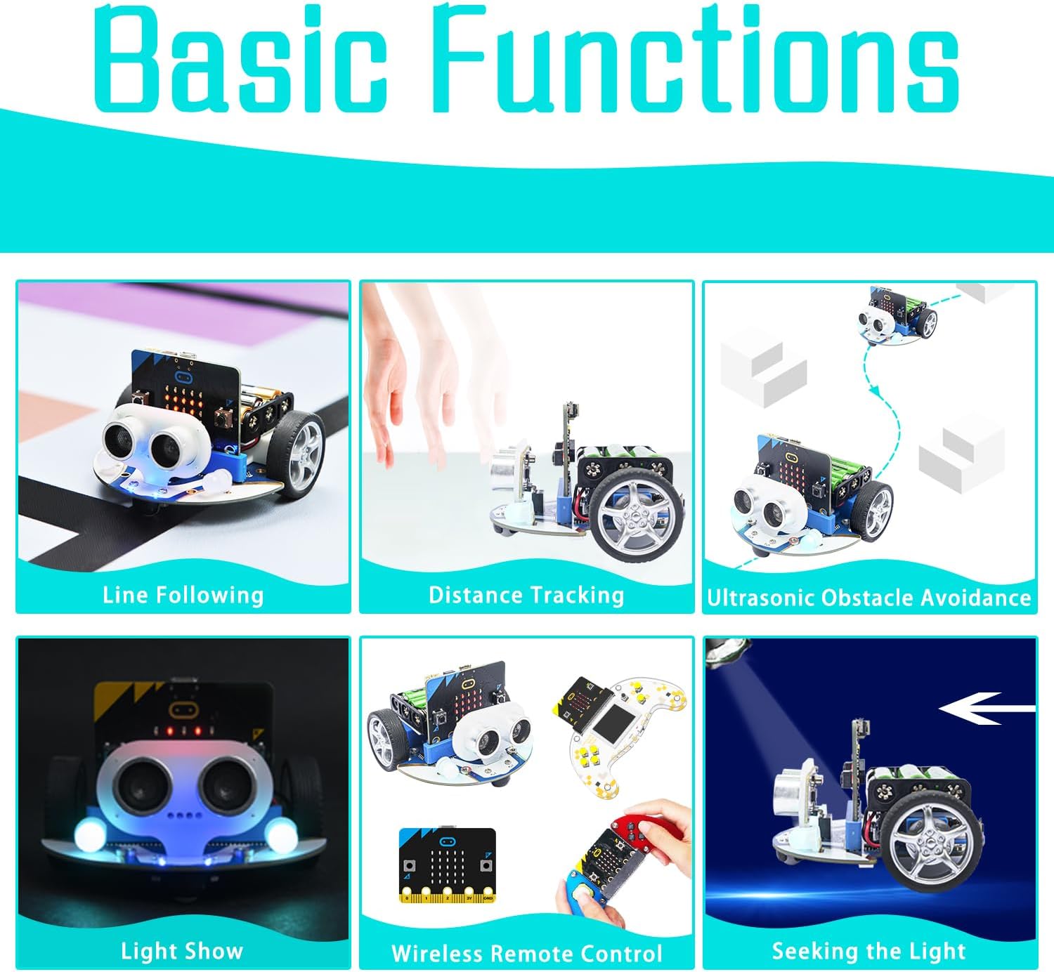 Creativity: Rich cutebot graphical programming blocks allow micro:bit beginners to learn programming from the simplest to more complex.They can achieve distance tracking, obstacle avoidance, line following etc.