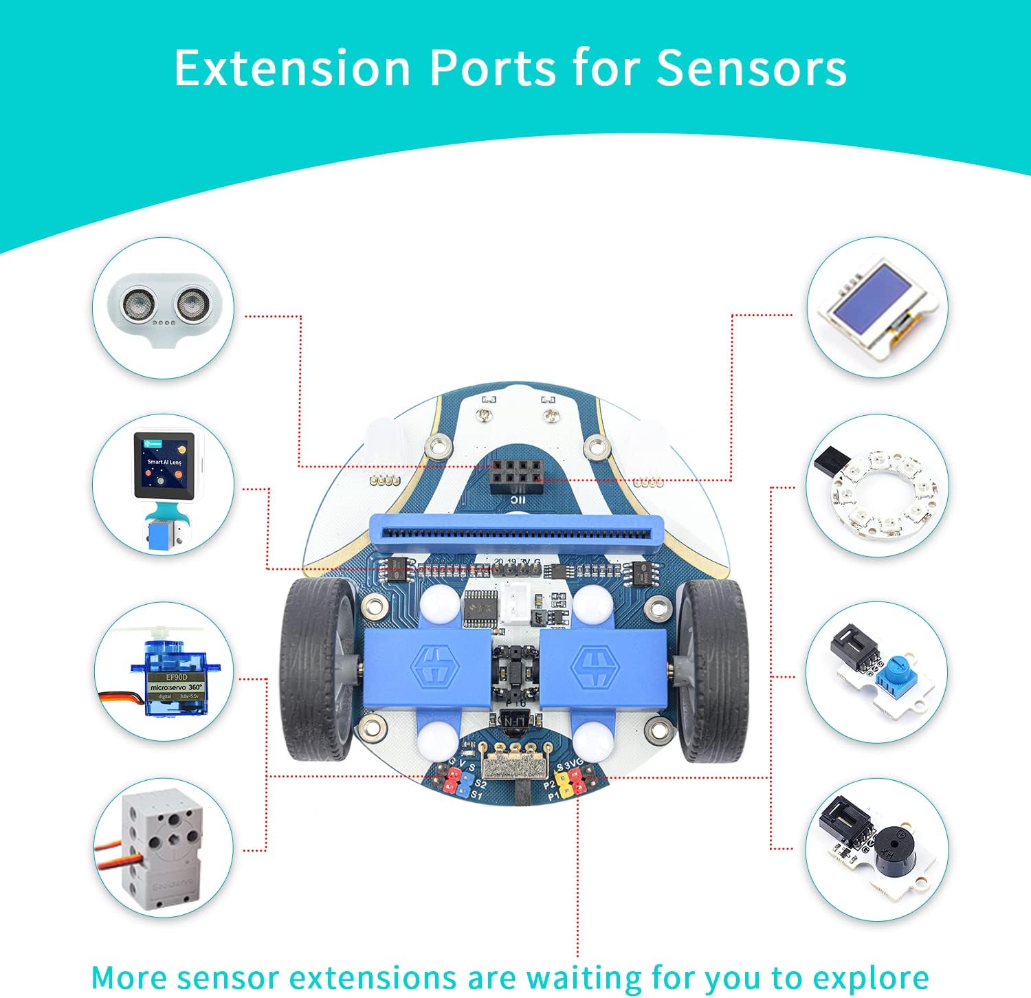 Extension Port: (1)Sensors Extension: We can do more experiments through 3PIN port. (2)Building Block Extension: This microbit robot is compatible with building block, We can create various cases. It better improves their interest in programming.