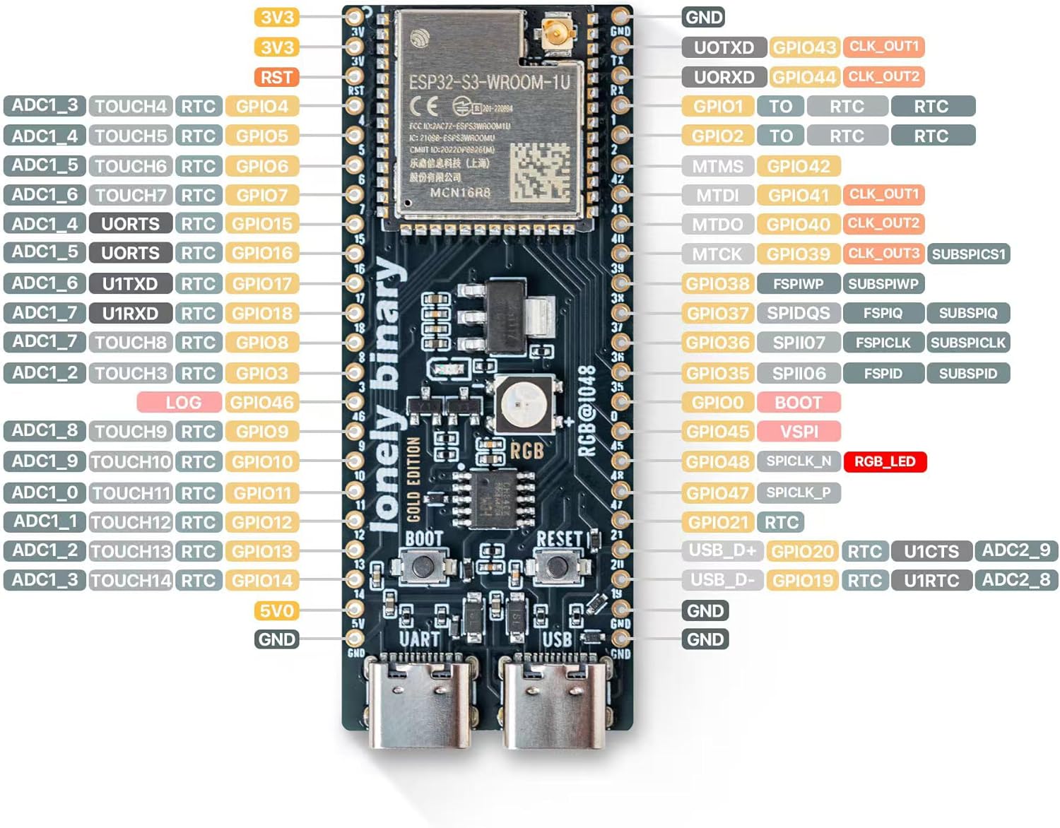 Lonely Binary ESP32-S3 IPEX N16R8 Gold EditionLonely Binary ESP32-S3 IPEX N16R8 Gold Edition