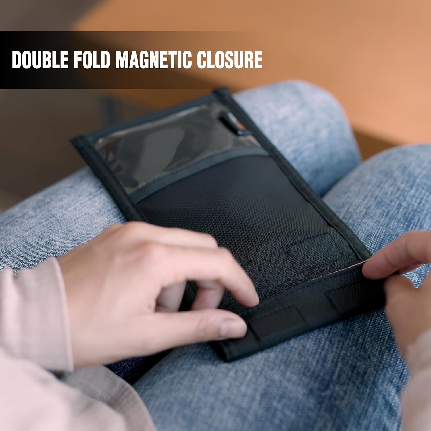 Special features Blocks cellular, WiFi, Bluetooth, RFID signals, Heavy-duty, water-resistant CORDURA® construction, Magnetic, double-fold closure, Military-grade strength and durability, Triple-layer Nickel/Copper Faraday shielding