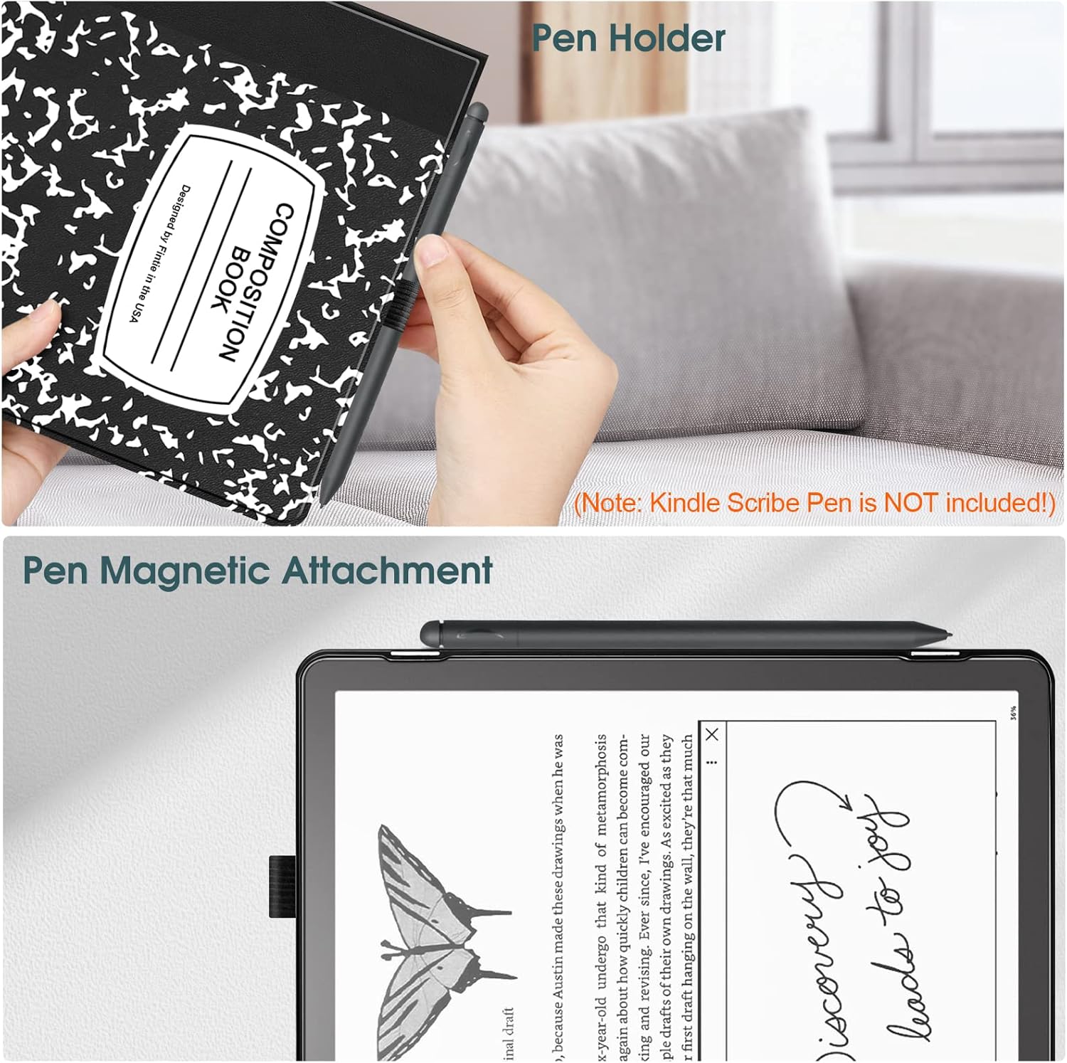 Built-In Pen Holder: Specifically designed with a pen holder to protect and store your kindle scribe pen. Keep it always ready for you. (Kindle Scribe Pen is NOT included)