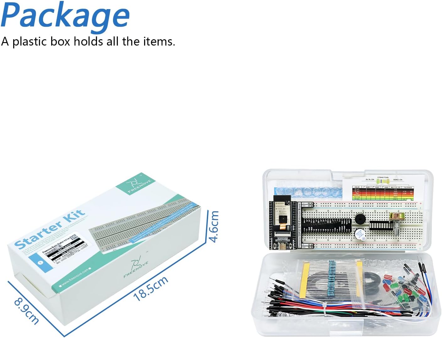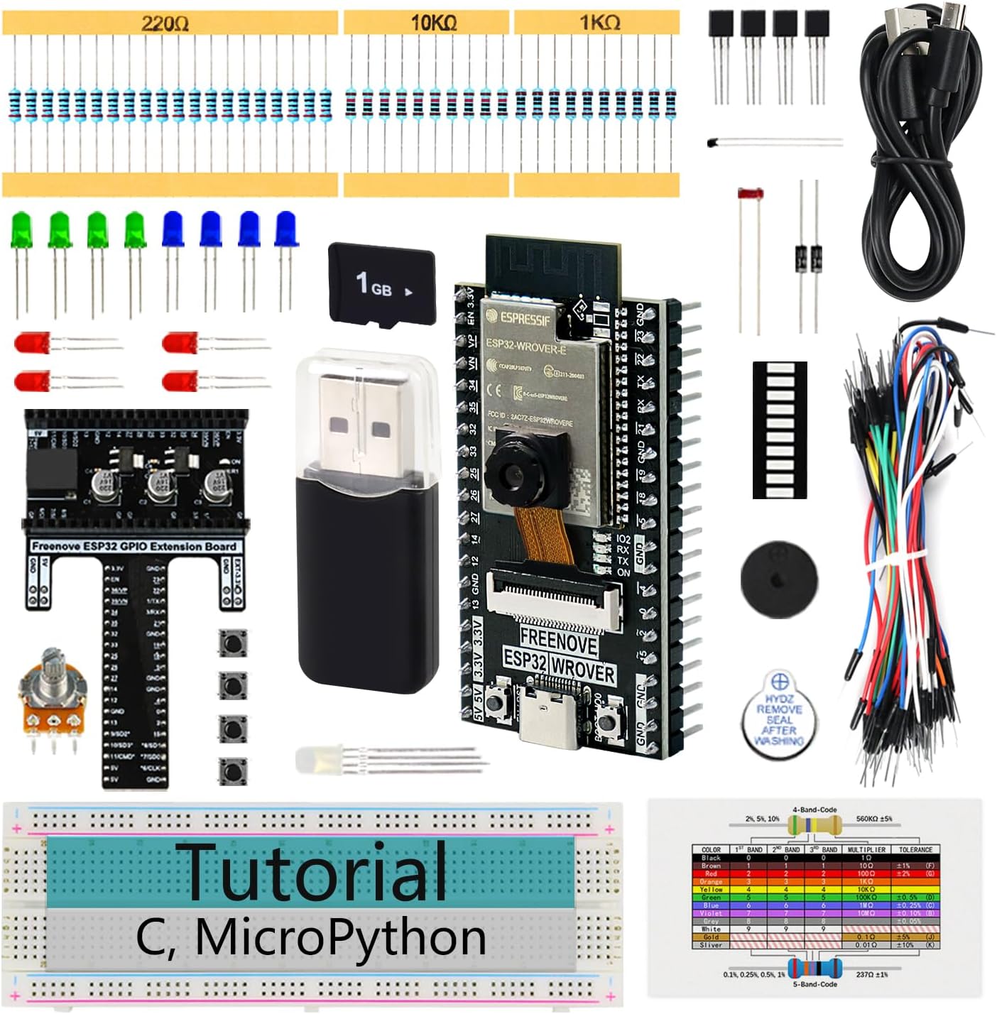 Freenove Basic Starter Kit for ESP32 CAM (Included), Dual-core 32-bit 240 MHz Microcontroller, Onboard Camera Wireless, Python C Code, 400-Page Detailed Tutorial, 141 Items, 58 Projects
