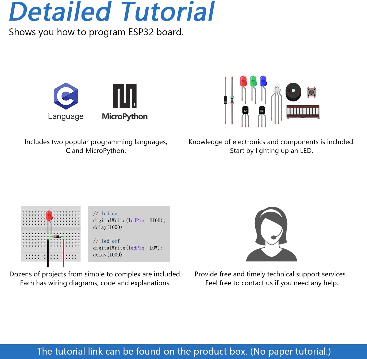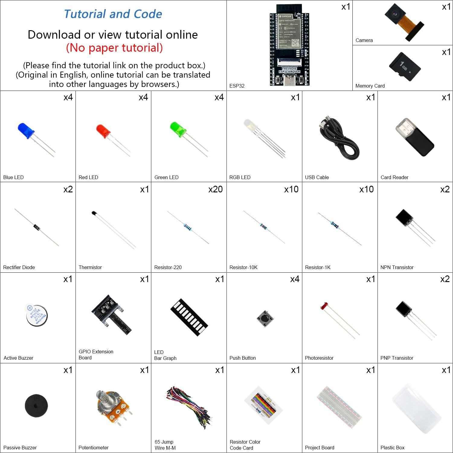 400-Page Detailed Tutorial in Total: Provides step-by-step guide with basic electronics and components knowledge (The download link can be found on the product box) (No paper tutorial)