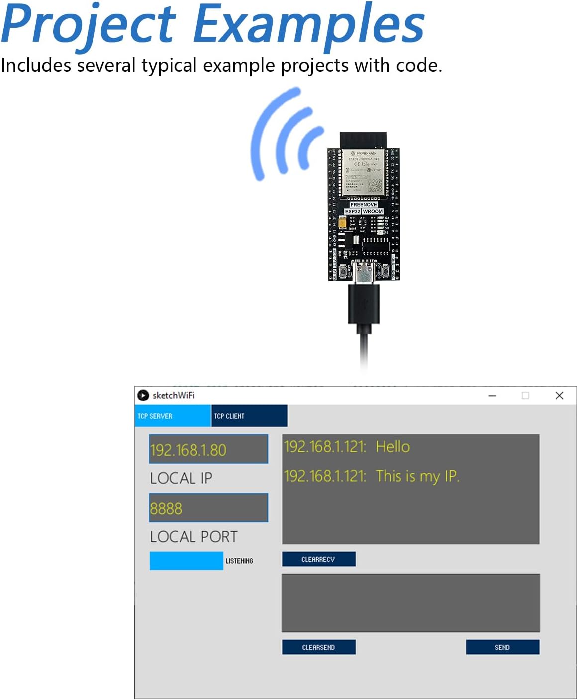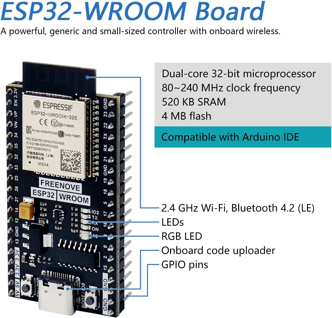 Home Core Cognition Freenove ESP32 Dev Board Kit (2 Pack), Dual-core 32-bit 240 MHz Microcontroller Development, Onboard WiFi+BT, Python C Code, Example Projects Tutorial