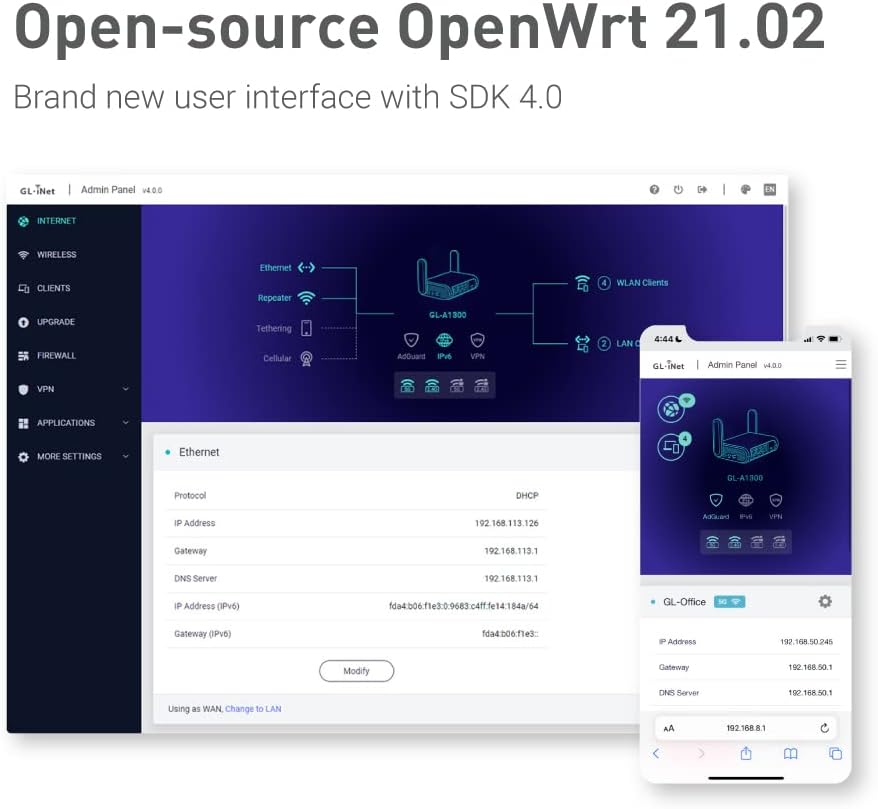 Founded in 2010, GL.iNet is a leading developer of OpenWrt Wi-Fi and IoT Network Solutions. We build Wi-Fi routers, IoT gateways and remote device management platforms for a wide range of scenarios.