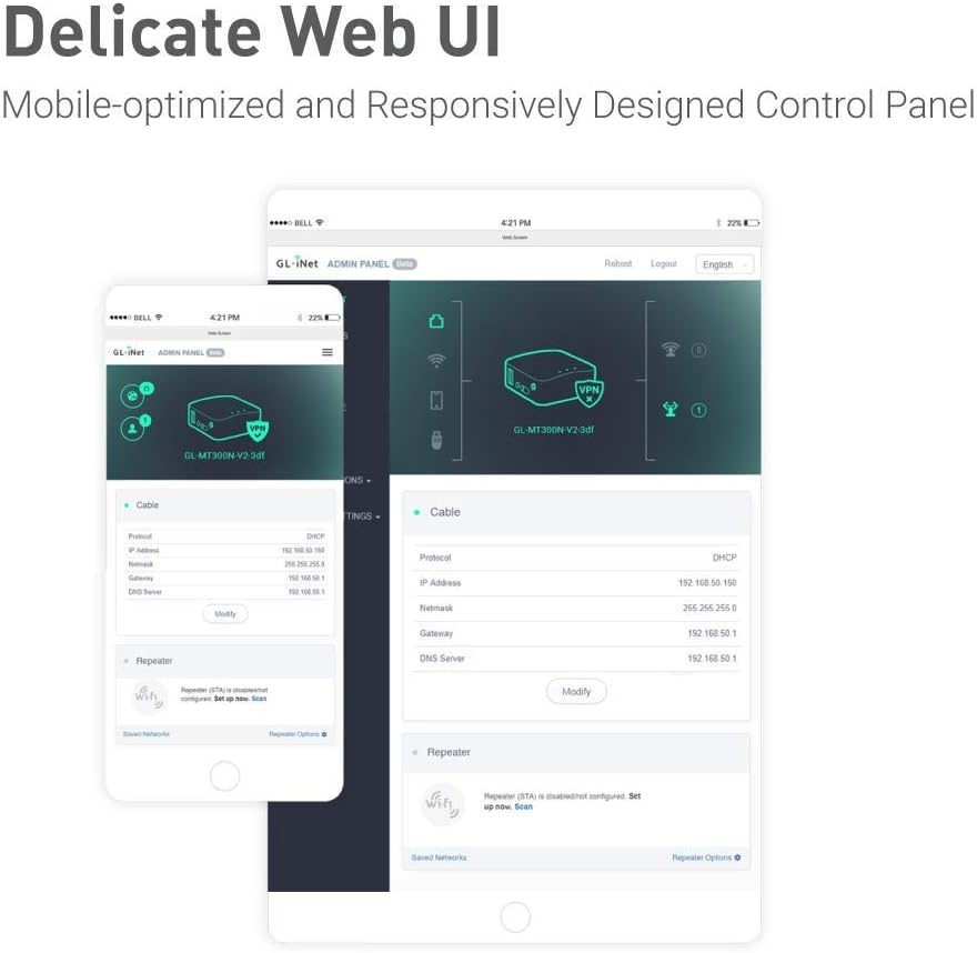 GL.iNet GL-MT300N-V2 (Mango) Portable Mini Travel Wireless Pocket VPN WiFi Router - 2X Ethernet Ports | USB 2.0 | OpenWrt | OpenVPN/Wireguard for Public & Hotel Wi-Fi | Easy to Set up via Admin Panel