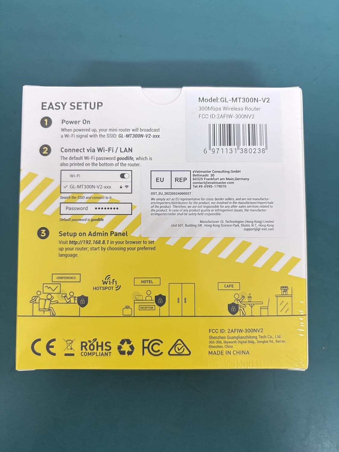 【PACKAGE CONTENTS】 GL-MT300N-V2 (Mango) mini router (2-year Warranty), USB cable, Ethernet cable, User Manual. Please update to the latest firmware.