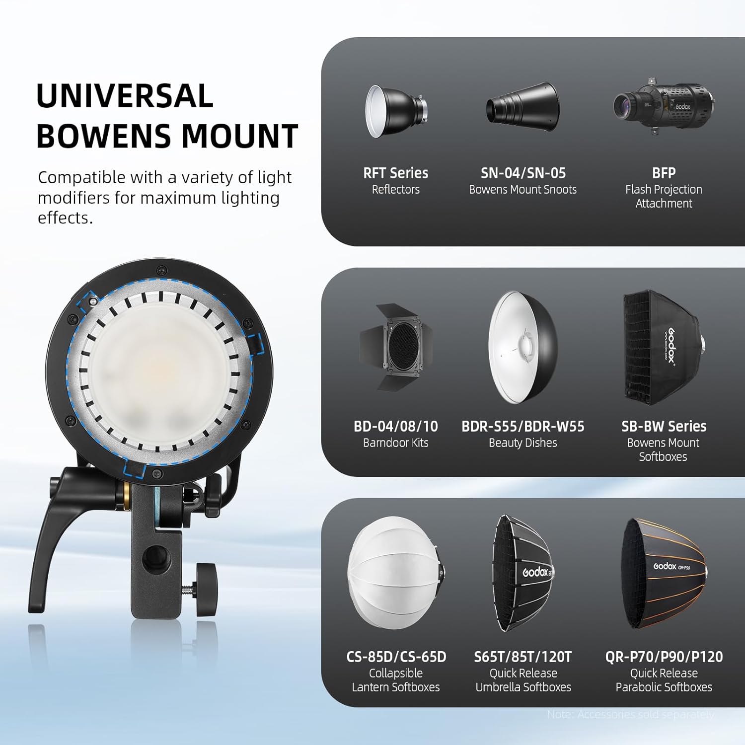 [Rich Compatibility and Accessories]: The AD600ProII is compatible with multiple camera brands' TTL auto flash systems, such as Canon E - TTLII, Nikon i - TTL, Sony, Olympus, Panasonic, Fujifilm, Pentax, and Leica. It supports Bowens mount accessories like softboxes, beauty dishes, and snoots for diverse lighting effects.