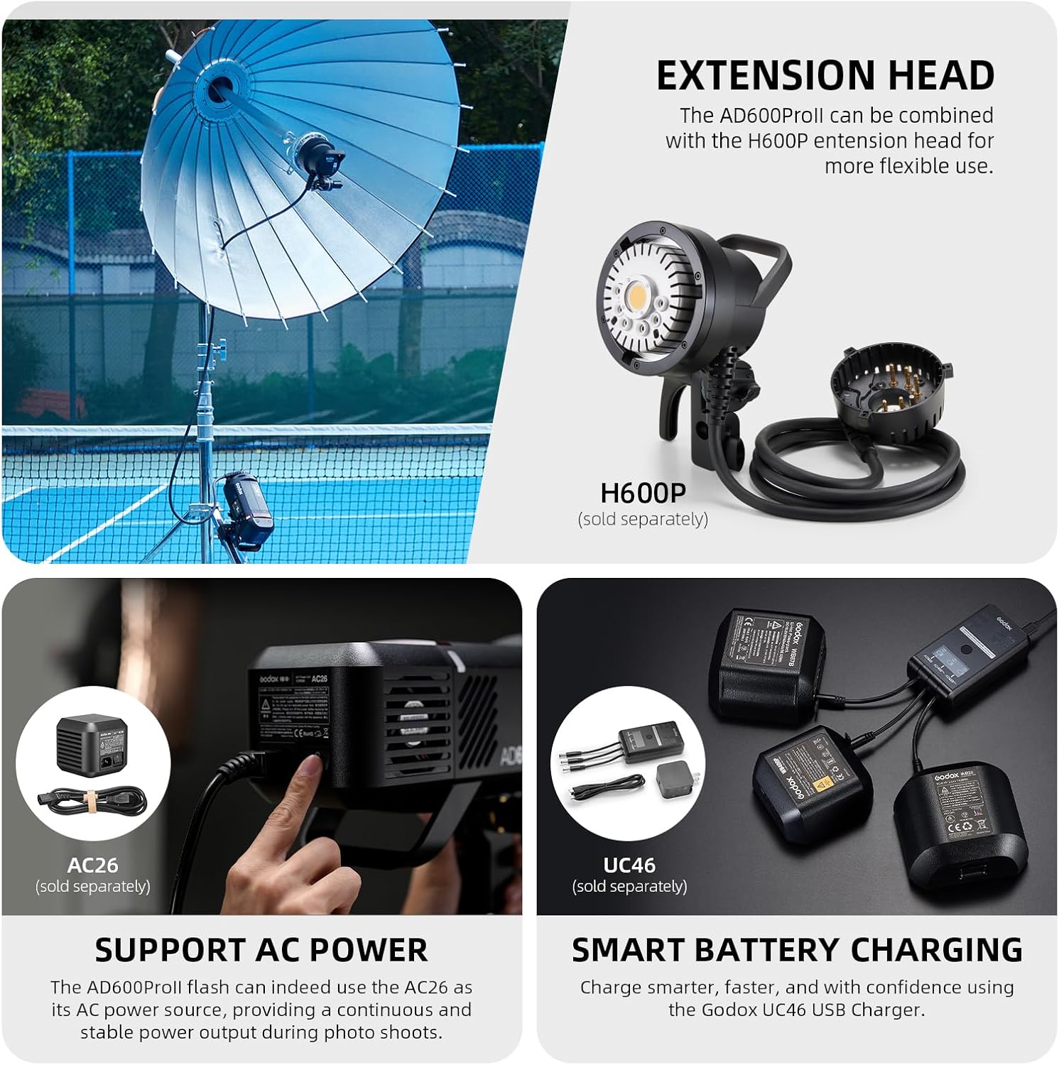 Godox AD600PRO II GN87 600W Outdoor Flash Strobe, 2.4G TTL Wireless, 1-Tap Sync with X3 Trigger,40W Bi-Color Modeling Light, 0.01-0.9s Recycle,1/8000s HSS Compatible with Canon,Nikon,Sony & More