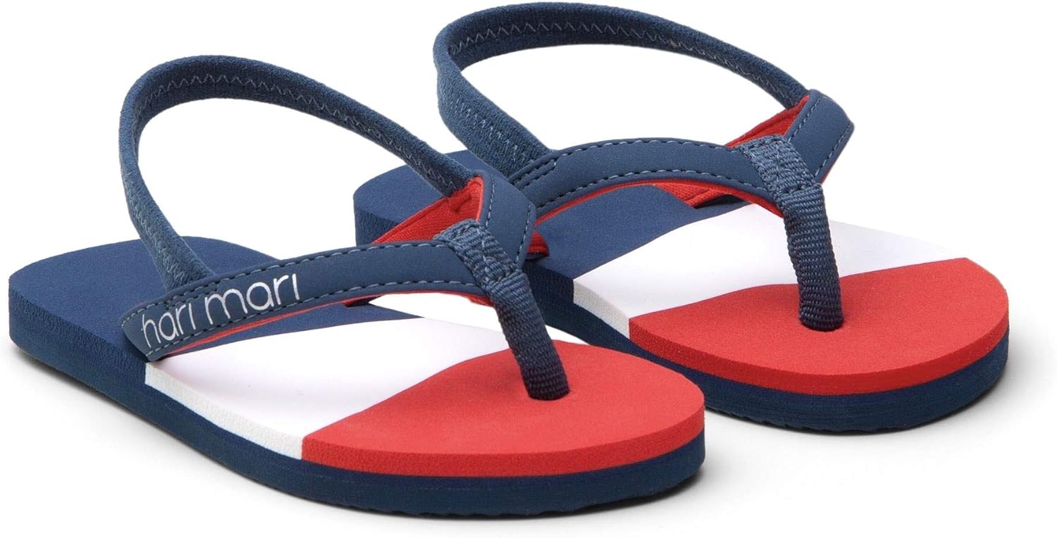 Hari Mari Meadows Asana - Navy/Red/Lily Girl's Premium Foam Rubber Flip Flops with Leather Straps and Rubber Outsoles K9