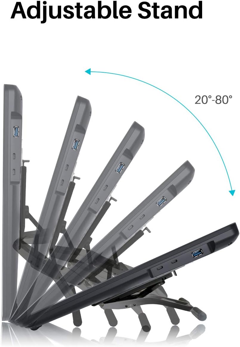 Adjustable stand: The ergonomically designed grey metallic stand not only matches the color of the graphics tablet but also allows you to create at a more comfortable angle from 20°to 80°, which helps to improve the productivity.