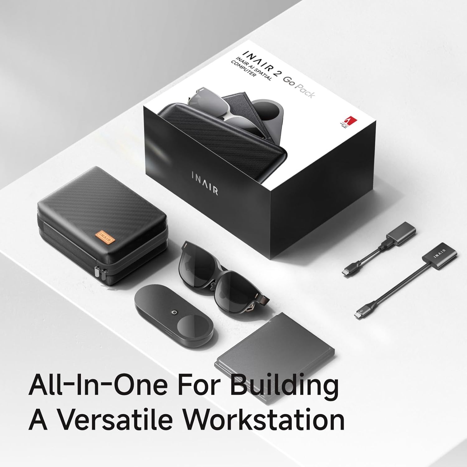 INAIR 2 Pro Go Pack| INAIR OS| AR Glasses + Pod + Fold Keyboard| Compatible with Vast Android apps| 6-Screen Expansion| Wireless PC Streaming| 3DoF Spatial Hovering| Real‑Time 2D‑to‑3D