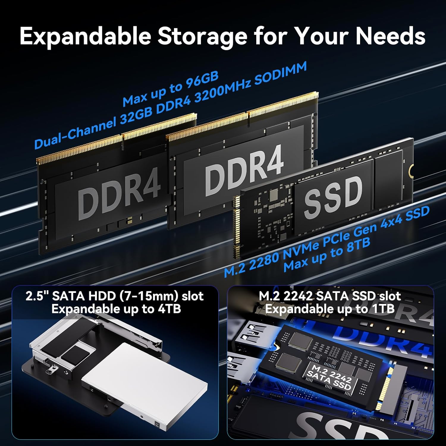 【Small Outside, Powerful Inside】--Intel NUC 13 Pro mini pc, For ASUS NUC 13 Pro with high-speed 16GB DDR4, Built-in 512GB M.2 SSD. 16GB of RAM memory makes your entire system speedy and responsive. That way it can support tasks like memory-hogging multitab browsing and opening a huge graphic file quickly and easily. If you want even more storage, you can also add a 2.5" SSD (not included) to expand the memory for a wonderful secure data bank.