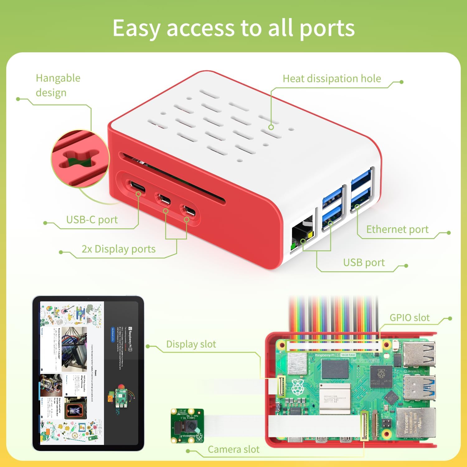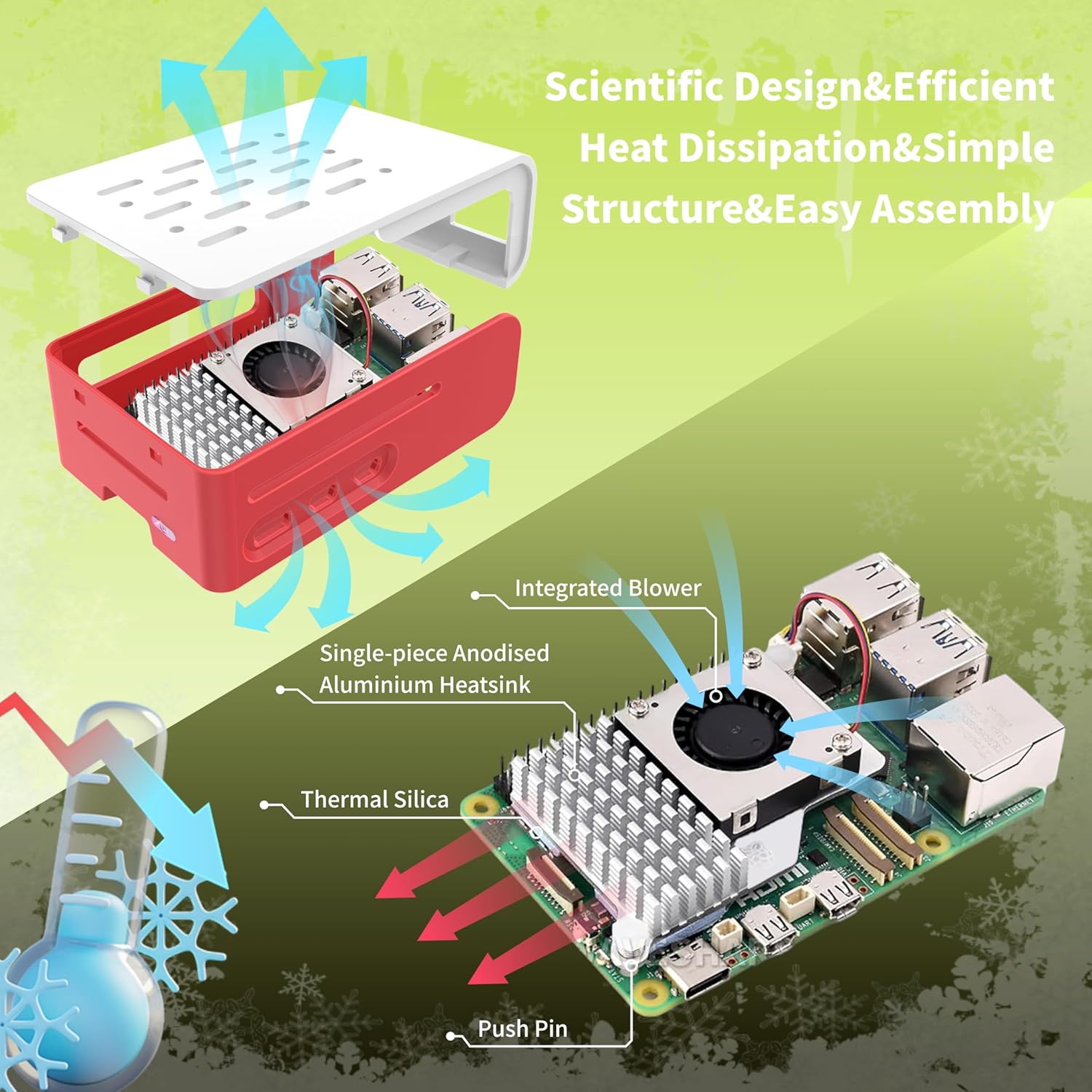 Specialized case design: This case is specially designed for Raspberry Pi5, perfectly fits the motherboard and can be fixed with 4 screws, which can effectively protect the Pi 5 motherboard from damage and external interference. The case is partially hollowed out to ensure heat dissipation. Equipped with transparent power button, you can easily observe the status of Pi5 power indicator.