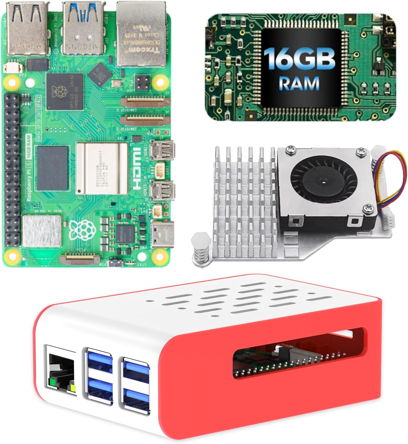 iRasptek Basic Kit for Raspberry Pi 5 16GB RAM with Pi5 Case and Active Cooler Included