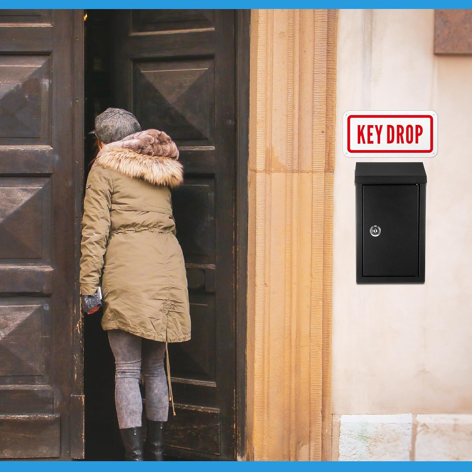 Easy Installation: the key drop lockable box is designed with pre punched mounting holes and includes mounting screws; You can conveniently fix it on walls, railings; The signs also have reserved mounting holes, making their set up quite straightforward