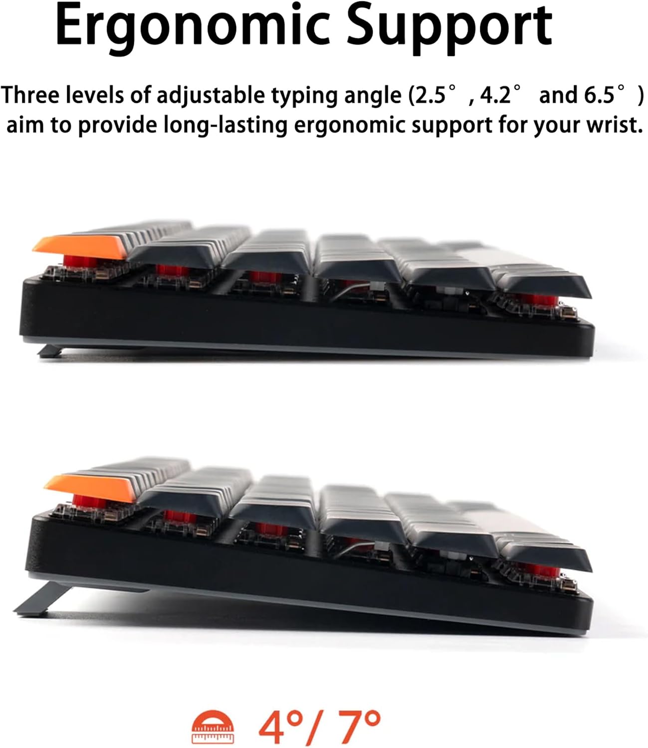 Three levels of adjustable typing angle (2.5°, 4.2° and 6.5°) aim to provide long-lasting ergonomic support for your wrist.