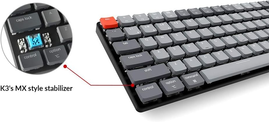 Keychron K3 Highlights: 75% layout ultra-slim wireless mechanical keyboard Bluetooth 5.1 and wired Reinforced aluminum body with plastic bottom frame Connects up to 3 devices For Mac & Windows Low-profile Keychron Optical brown switches preinstalled 18 Types of RGB backlight PACKAGE CONTENT: