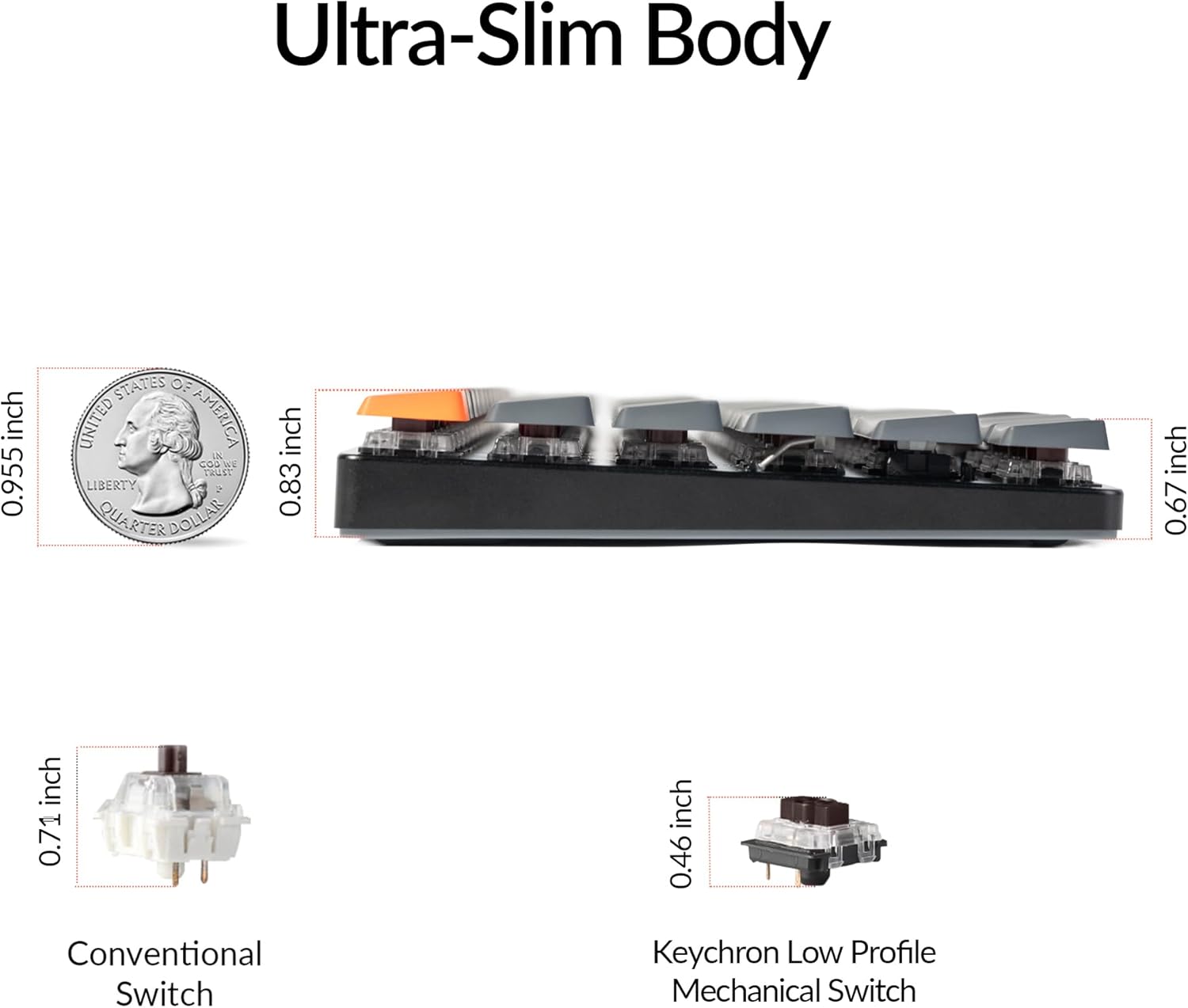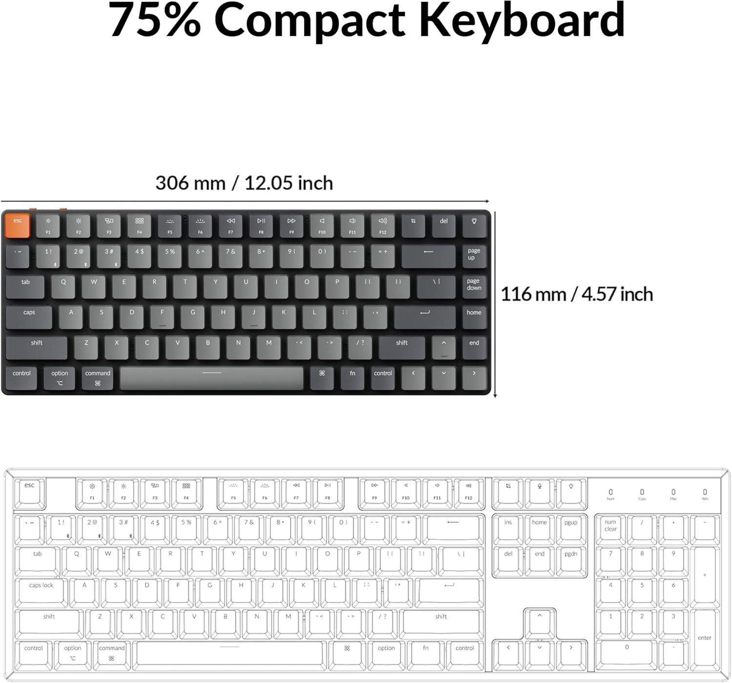 The Keychron K3 features a compact 75% layout with 84 keys, striking the perfect balance between functionality and space-saving design. It caters to users who require a full set of keys without the bulk of a traditional keyboard. The ultra-slim body is not just a design choice; it integrates seamlessly into any workspace, making it easy to transport for on-the-go professionals.