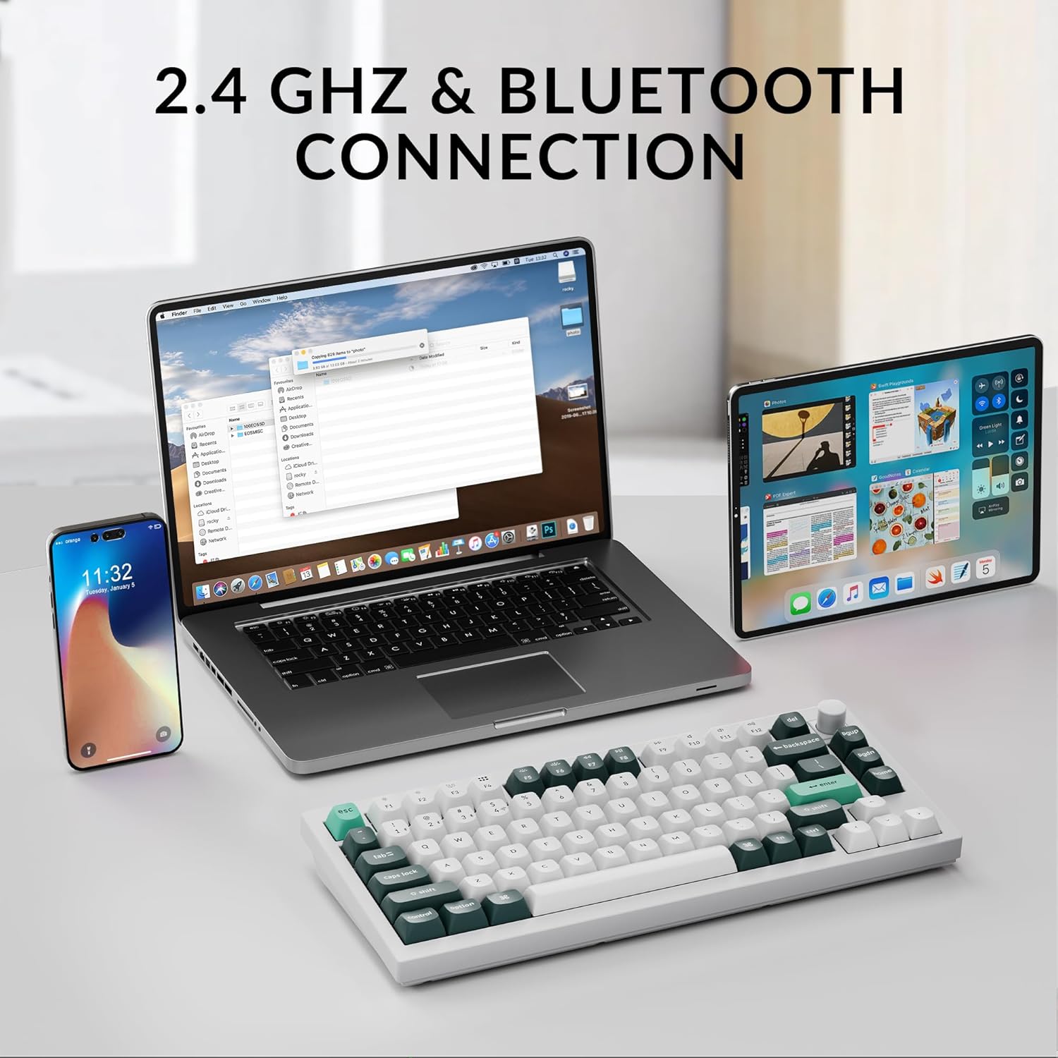 2.4 GHz and Bluetooth Connection: The Q1 HE's 2.4 GHz wireless connection boasting a rapid 1000 Hz polling rate. For seamless multitasking across your computer, phone, and tablet, you can effortlessly connect the Q1 HE via Bluetooth 5.2 to three devices