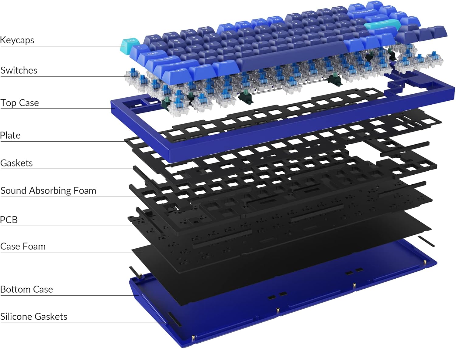 The Keychron Q1, a fully assembled customizable 75% layout mechanical keyboard features QMK/VIA support, full aluminum CNC machined body, double-gasket design, and OSA profile double-shot PBT keycaps, every component of the Q1 is designed to be easily assembled, you can customize and adjust each component you want.