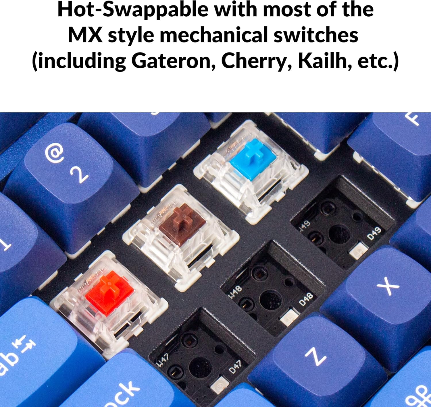 The hot-swappable sockets are mounted on the PCB and compatible with almost all the MX style 3pin and 5pin mechanical switches on the market (including Gateron, Cherry, Kailh, etc.), you can install or change the switches without soldering. Pre-installed the pre-lubed Gateron G Pro mechanical brown switch providing unrivaled tactile responsiveness with up to 50 million keystroke lifespan.
