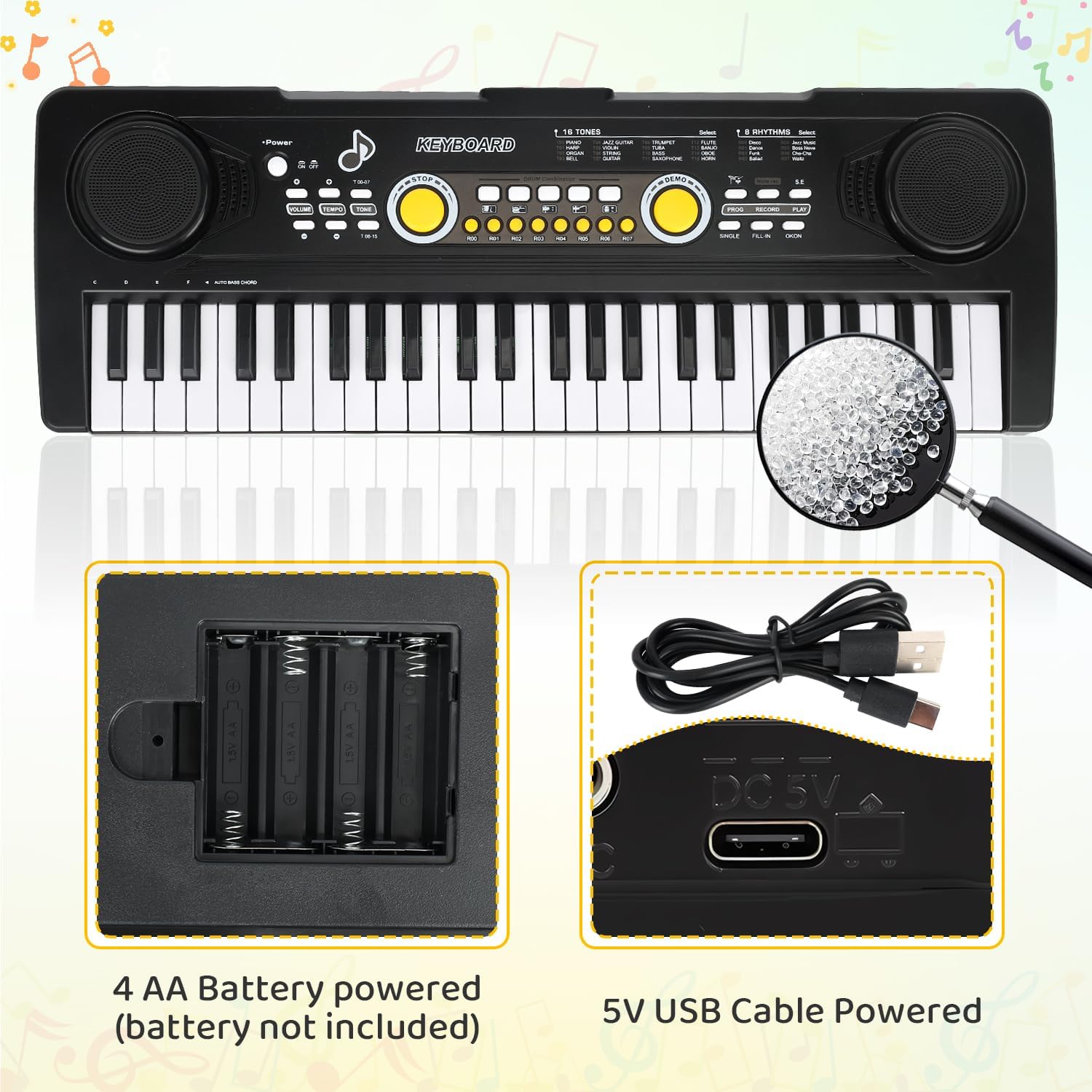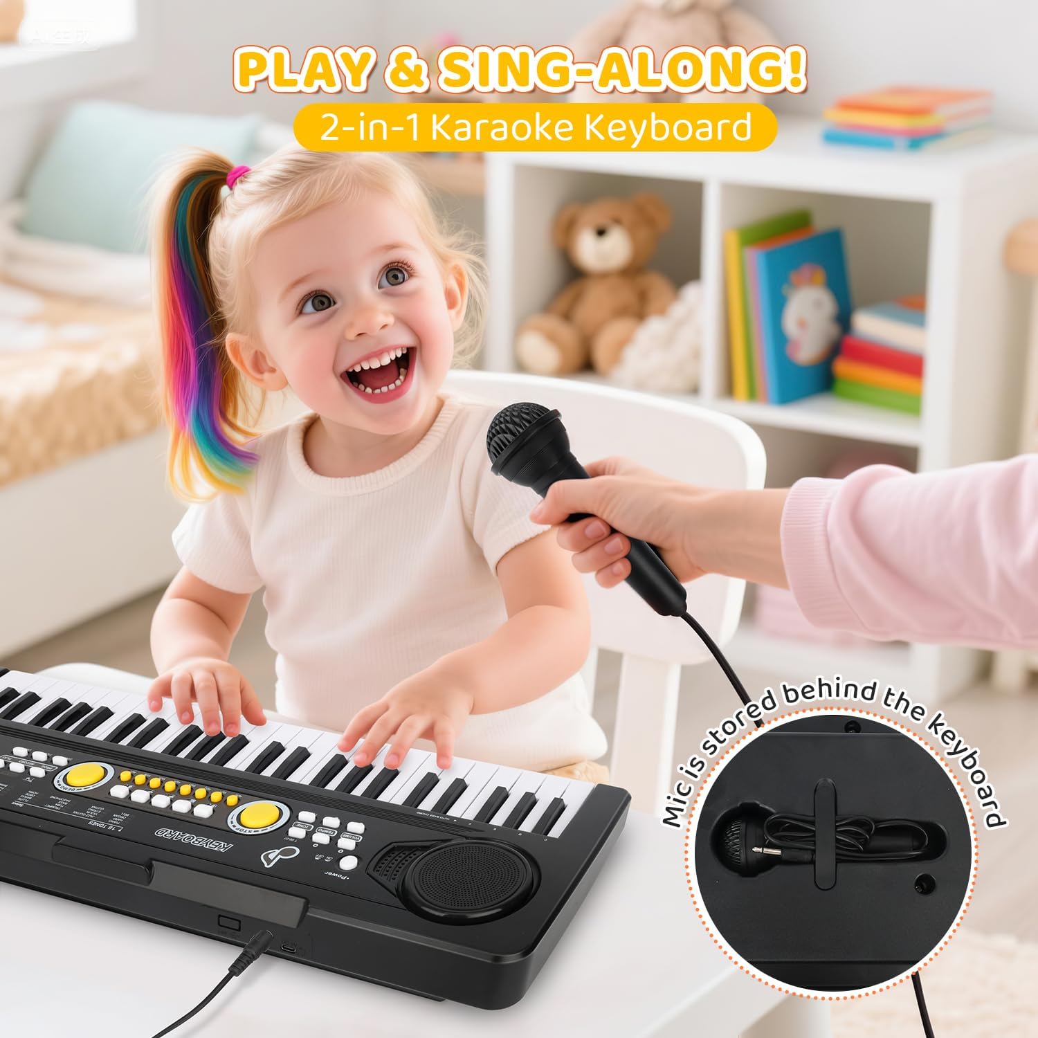 Kids Piano Keyboard with Microphone, 49 Keys Portable Electronic Piano Keyboard for Kids Beginners Ages 3 4 5 6 7, Toy Music Keyboard Birthday Xmas Gift for Girls Boys, Black