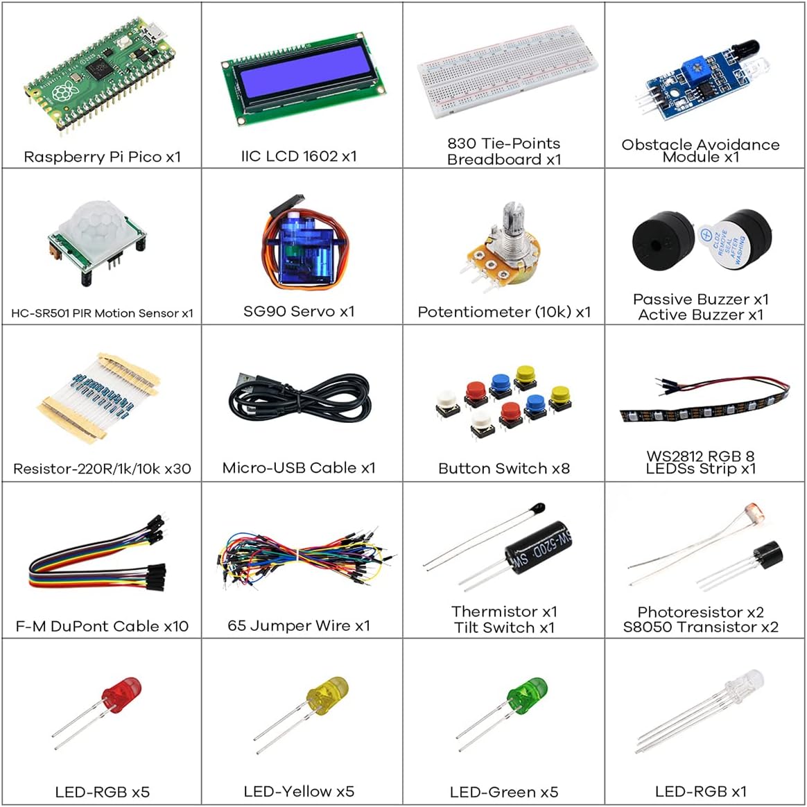 LAFVIN Basic Starter Kit for Raspberry Pi Pico,LCD1602,SG90 with Tutorial