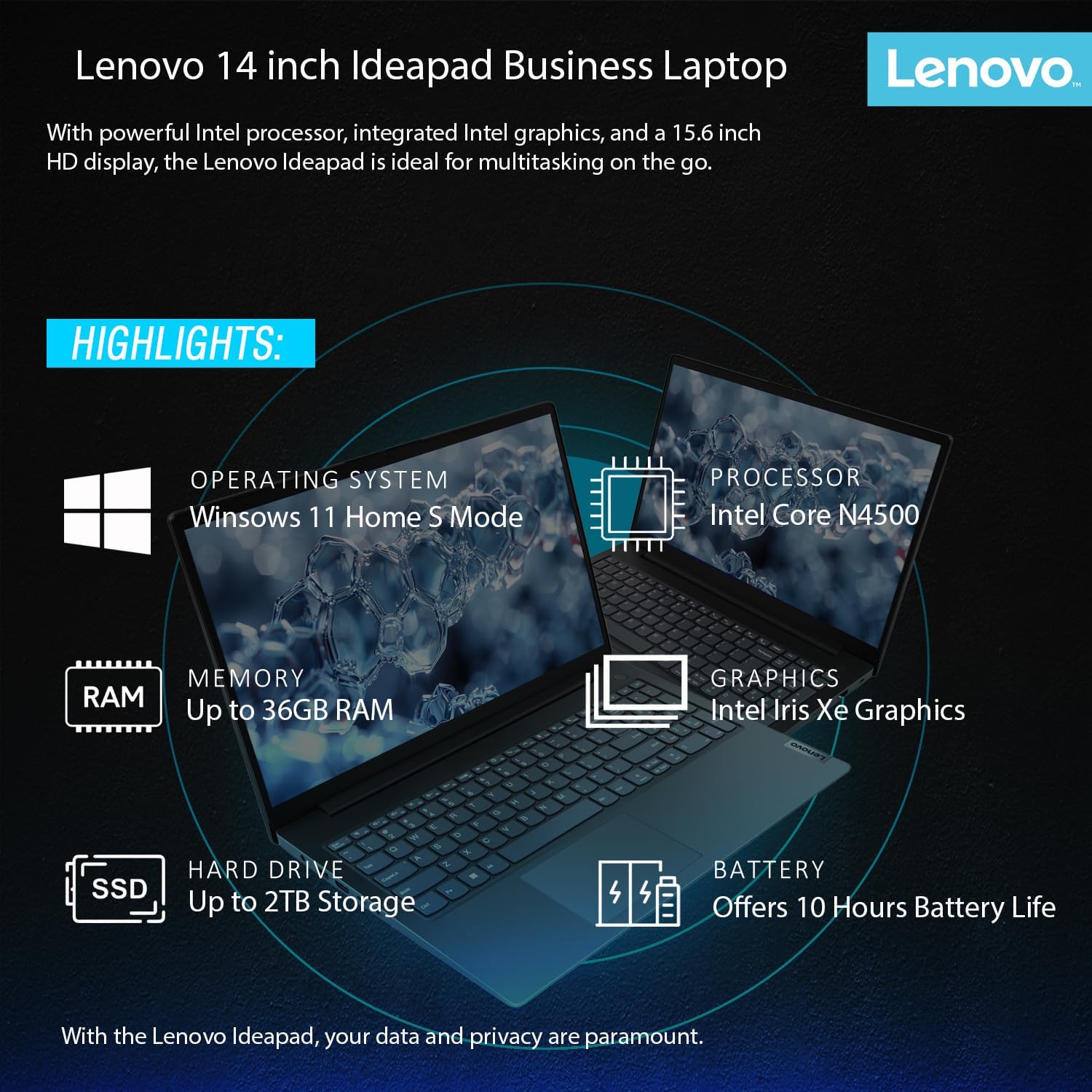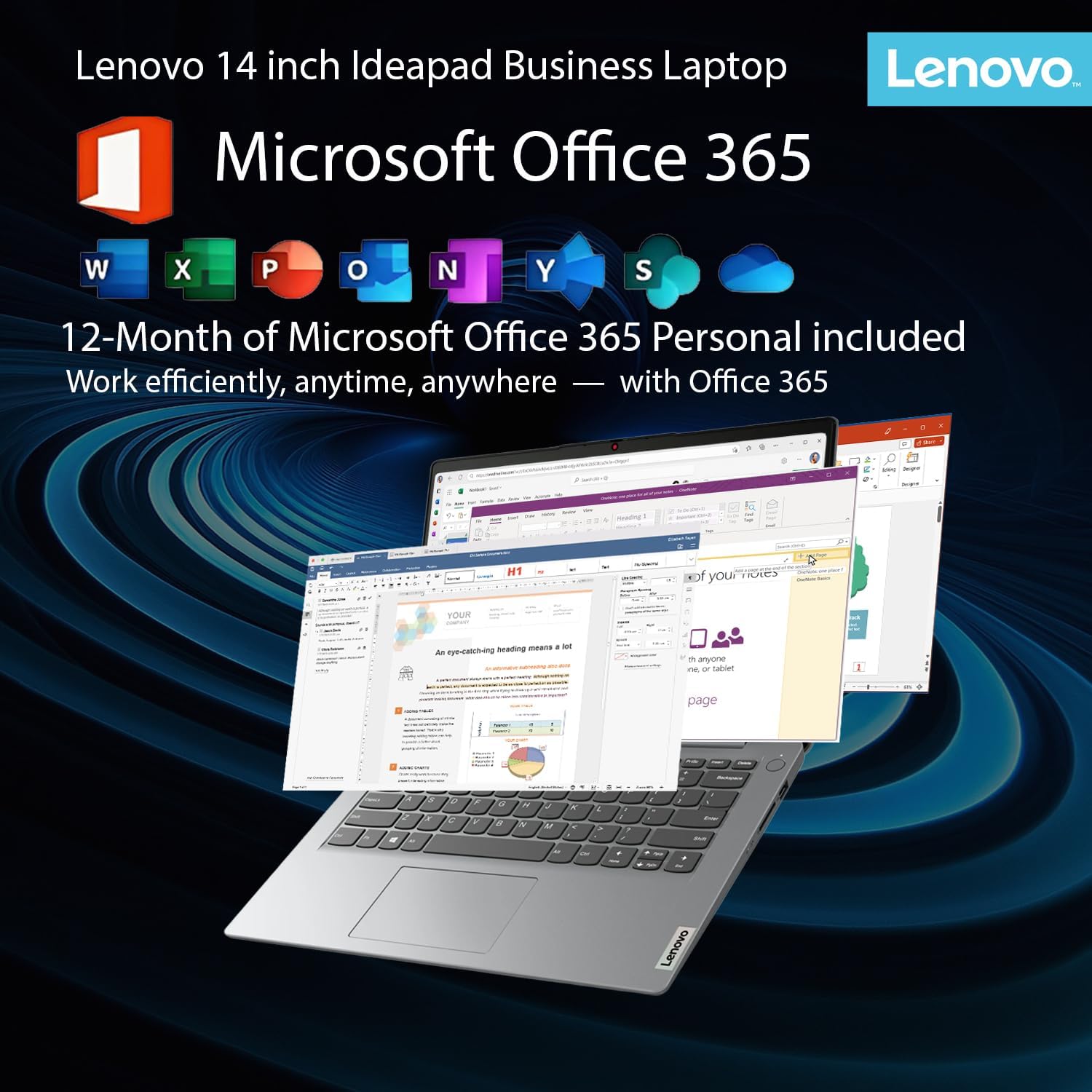 Lenovo IdeaPad Business Laptop with Microsoft 365 • 11 Hour Battery • Intel High Performance CPU • 8GB RAM • 128GB Internal SSD | with Additional 1TB One Drive Storage • SD-Card Reader • Windows 11
