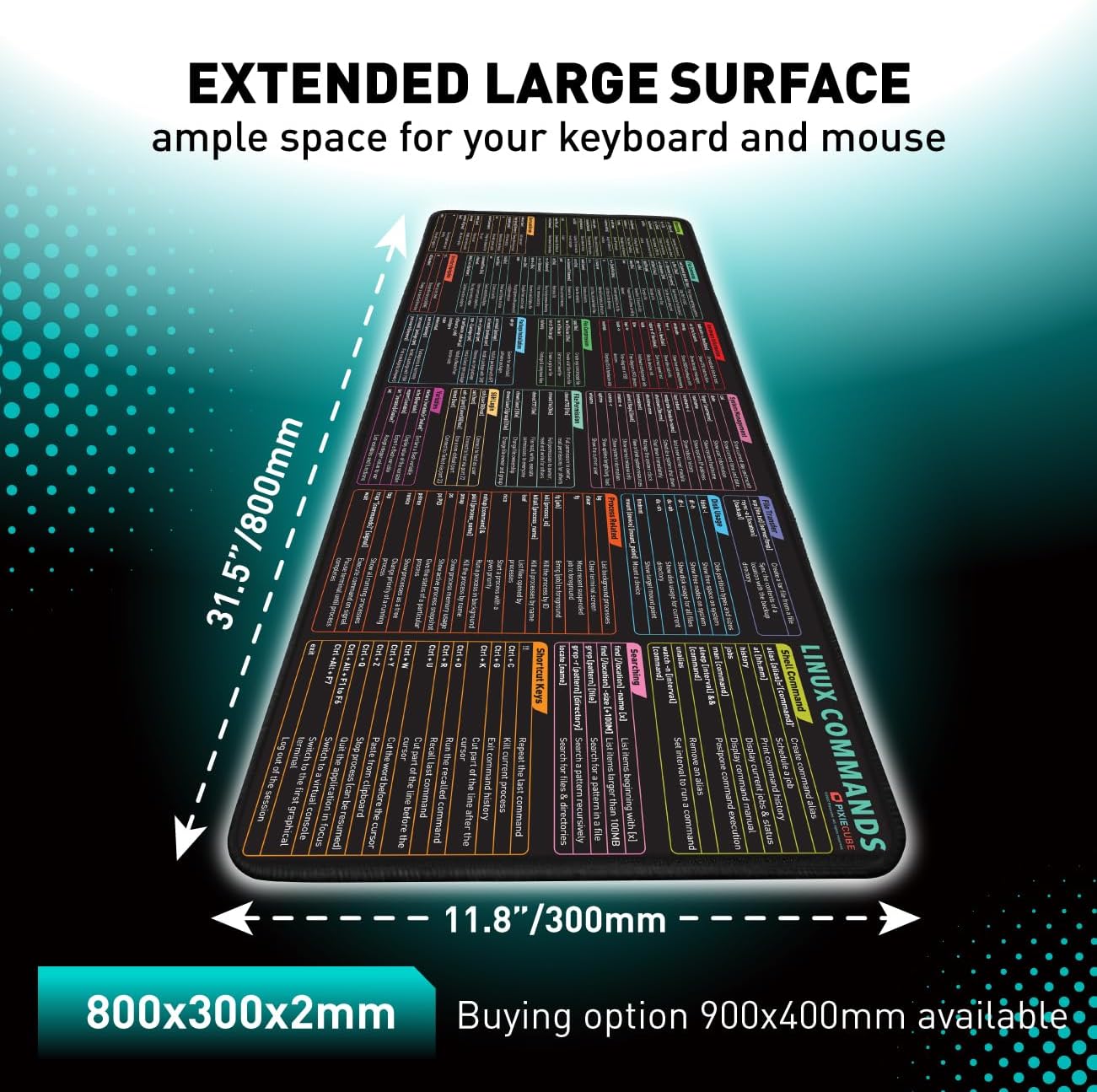 Linux Commands Line Mouse pad - Extended Large Cheat Sheet Mousepad. Shortcuts to Kali/Red Hat/Ubuntu/OpenSUSE/Arch/Debian/Unix Programmer. XXL Non-Slip Gaming Desk mat