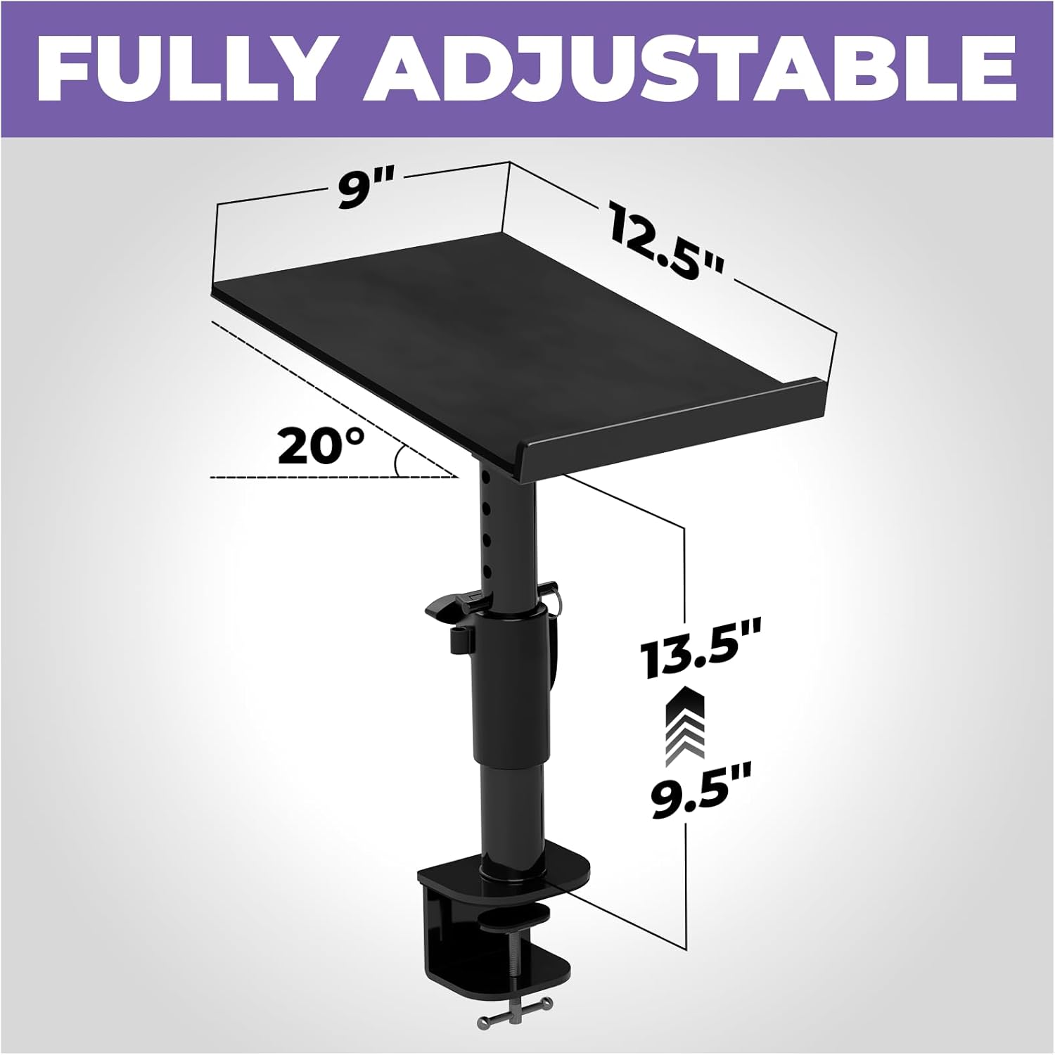 VERSATILE: The Liquid Stands monitor speaker mount works for desks between 0.5 to 2 inches thick. The platform measures 9"x12.5" and height adjusts from 9.5" to 13.5".
